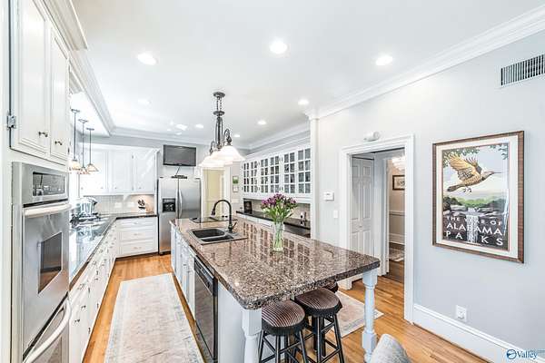 Lake Town + Mountains, Downtown Locale, Walkability, Private & Spacious ... this Greek Revival home is only 30 quick minutes to Huntsville, and is Far From Ordinary! It has 2.25 manicured acres, a long tree-lined driveway & a Grand Front Porch that's ideal for morning chats & coffee. Inside are soaring ceilings, original hardwood floors & oversized windows that fill the home with natural light. This well-loved home has numerous upgrades & amenities, spacious living area's, large kitchen w/white cabinets, 4 bedrooms, 3.5 baths, large stamped patio, Koi Pond, huge yard for family/friends/pets, plus numerous entertaining spaces. 60 min to Chattanooga, 2 hrs to Atlanta, Nashville & Birmingham.
