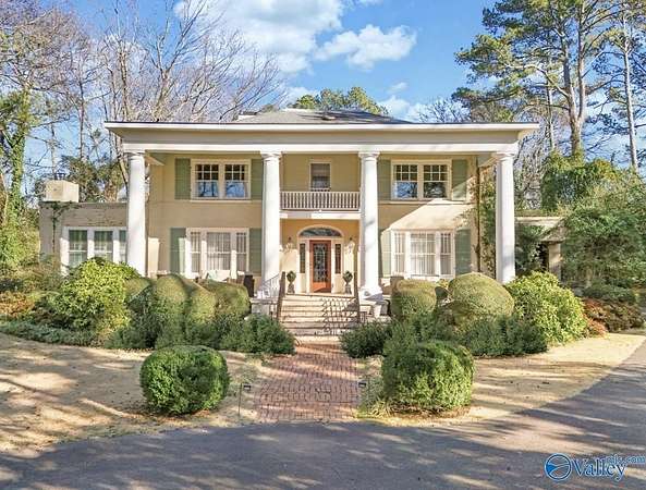 Historic Greek Revival architecture defines this one-of-a-kind estate. Set on 2.25 private acres just 30 minutes from Huntsville. The stately residence is anchored by iconic columns and a deep Southern porch. Surrounded by mature trees, lush landscaping, and a tranquil koi pond-creating a picturesque setting for any event or family gathering.Inside, elegant and expansive living spaces feature soaring ceilings, original hardwood floors, and timeless architectural details. Offers a generously sized, updated kitchen, four bedrooms, three-and-a-half baths, and a large stamped patio designed for refined entertaining and relaxed outdoor living. A rare blend of heritage, charm, and Southern living.