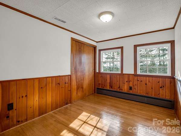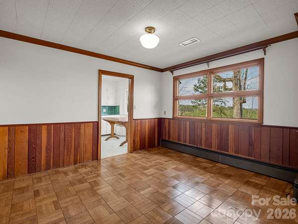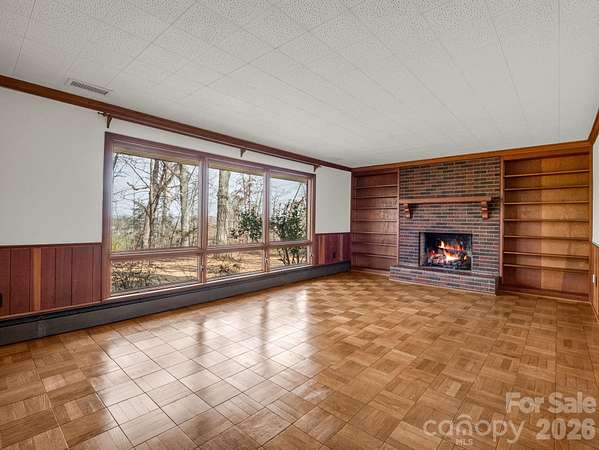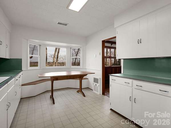 Nestled among mature hardwood trees on 2.15 acres, this spacious custom home offers the perfect blend of privacy, comfort, and timeless appeal. Situated on a gently sloping lot, the home welcomes you with a classic exterior. One of the standout features is the covered long front porch-perfect for relaxing and enjoying the peaceful surroundings or entertaining in any weather as it joins the attached carport. Watch the sun rise on your front porch or sit in the backyard where you have long range views of the sunset. Inside you will find generous living spaces throughout. Large windows bring loads of natural light across the backside. There is an awesome retro-style kitchen complete with vintage counter-tops that bring both character and durability. The nostalgic design is a unique find equipped with a breakfast nook with custom table. There are 4 bedrooms and 3 baths so plenty of room to spread out with space for office or hobbies or an occasional guest. Home is convenient to shopping and minutes to the TIEC complex or a short drive to Asheville. This one has great bones so schedule your appt. today!