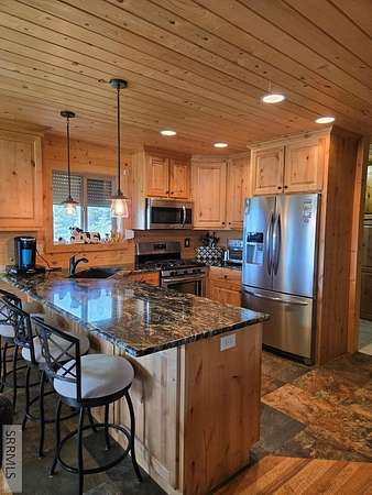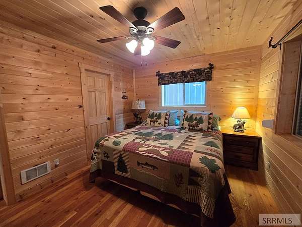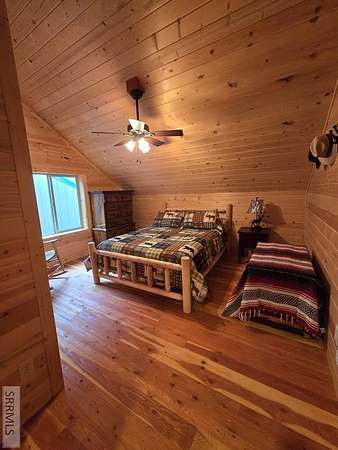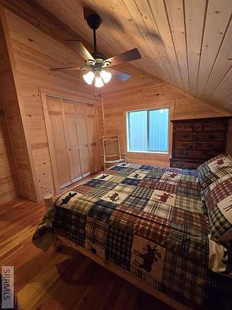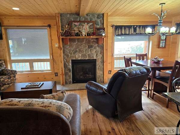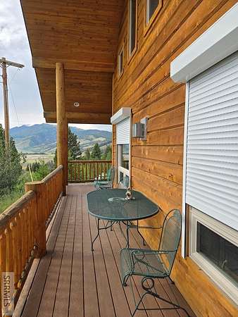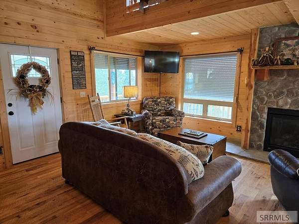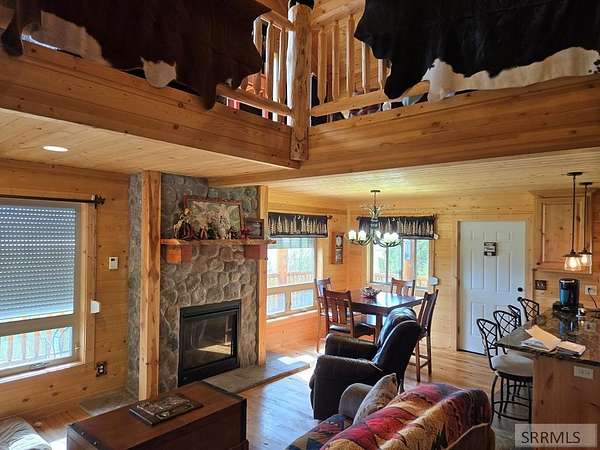 Vacation literally on the mountain!!! This incredible cabin is tucked away atop the mountain with amazing views of Henry's lake and the valley around. A serene tranquility to relax and leave all your troubles behind. Built just a few years ago this cabin has it all to enjoy all the mountain has to offer while viewing it from your wrap around covered porch. Security shutters are on all the windows for peace of mind and protection while you are away. Inside you'll find large windows to enjoy natural light. A rocked gas fireplace to snuggle up on the couch. The kitchen has custom hickory cabinets, granite countertops & tile floors. Hickory floors & Pine wood floors throughout. The main floor master bedroom has a walk in closet with a connecting bathroom, tile floors, and granite countertops. A unique large wood log goes through the cabin from the main floor to the vaulted ceiling to give a true cabin feel. Log stairs lead up to the upper floor with pine tongue and groove in the bedroom and a bathroom with granite countertops. Hand crafted wood trim accentuates both floors. So much storage lines the upper floor and many inviting windows gives another view of the valley and lake below . Two stall garage with a 10ft garage door to store your vehicles or toys. A must to own!!!