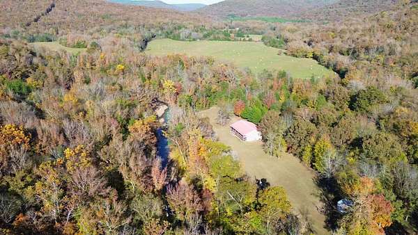 A true Ozark Getaway nestled between Little Mulberry Creek and Friley Creek in beautiful Johnson County. With roughly 8 flat acres and a cabin that is like new, you're not going to want to leave this place. Wood flooring throughout. Front and back covered porches to soak in the surrounding mountains and flowing water. Perfect for those looking to live in a secluded, peaceful setting along the water or anyone looking for a weekend place to relax and unwind. The views in this valley are breathtaking. Sitting behind a wooded, gated entry, this spot provides total privacy and seclusion. You simply will not find many places like this. National Forest extremely close in all directions. Electric, fiber and well on site. Additional acreage available.