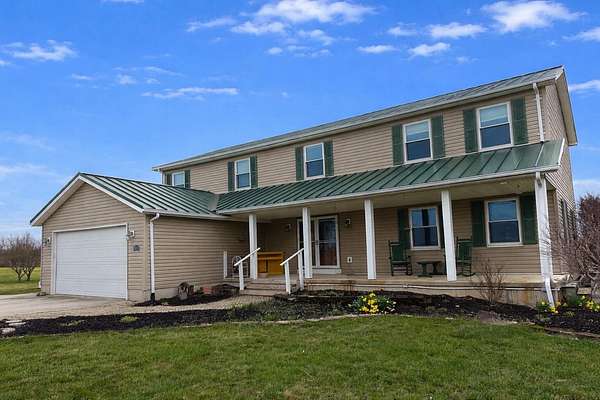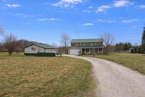 Welcome to 5177 Warvel Rd.! This stunning property comes with over 5 acres, and features a large above ground pool with a vinyl deck, perfect for entertaining and relaxing! Inside, you'll find four generously sized bedrooms and two full bathrooms, including a beautifully appointed primary bath featuring a relaxing jacuzzi tub and a separate stand-up shower. Two additional half baths provide added convenience for family and guests. The full basement and two living areas offer even more room for everyone to spread out and have their own space. The bright and inviting sun room allows you to enjoy the sunshine all year round, and soak in the beautiful property. The built in storage in the basement, and walk in closets scattered throughout the house leave you with with no shortage of storage. Car enthusiasts, hobbyists, or business owners will appreciate the exceptional garage space. In addition to the attached two-car garage, the property boasts a massive four-car detached garage equipped with a 9,000-pound capacity post lift -- ideal for automotive projects, equipment storage, or workshop use. Heat and cool the house effectively with the geothermal hvac system that was recently serviced. Updates include the new flooring and light fixtures, newer appliances, new windows, a metal roof that's only 10 years old, and so much more! This is a one of a kind property with endless possibilities! Schedule your private showing today and experience everything this exceptional property has to offer!