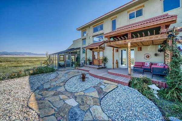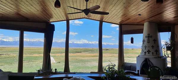 Incredible Opportunity and Potential! Motivated Seller! Amazing Value! PRICED Below Market Value! Lazy D Ranch! A Historic, Colorado Ranch w Water Rights, Sweeping Views, Timeless Charm AND a masterpiece of a home on it! This remarkable 356-acre property in Colorado’s stunning San Luis Valley has unobstructed views of the Sangre de Cristo Mountains & Saguache Creek running through the property! The ranch is turnkey and offers the ultimate lifestyle for cattle, horses, hay production or as a perfect retreat!. The 5800 +/- sq ft custom main home, built in 2009, was thoughtfully designed to showcase the mountain vistas from every angle. Floor-to-ceiling cypress-framed windows, Douglas fir ceilings, radiant in-floor heat, and an amazing chef’s kitchen with walk-in pantry create a rustic elegance throughout. Unique features include a sunset lounge with passive solar design, a rock waterfall entry, Venetian plaster walls, and a spacious media room. Step outside to the outdoor entertaining space with a pizza oven, built-in BBQ, and ¾ fenced courtyard with decks, lounge areas, and a cozy fire pit—perfect for gatherings under Colorado skies, dark sky nights or sunny days.. The ranch includes two high-producing irrigation wells (1200 and 950 GPM), stock wells, several priority ditch rights, ponds, and good surface water rights from/on Saguache Creek. Outbuildings include a historic barn, root cellar, calving sheds, the original homestead, and a 3,200 sq ft shop with radiant floor tubing, bathroom plumbing, and 3-phase power. Water hydrants and power serve the house, shop, corrals, and future manager’s home site. Farm equipment—hay wagon, riding mower, pumps, irrigation pipe, fuel tanks, and more—is included. Just 10 minutes from the Town of Saguache, this Ranch blends natural beauty, modern infrastructure, and rich agricultural potential. Whether you're ranching, homesteading, or investing, this is Colorado living at its best. LISTED IN FARM AS WELL.