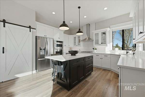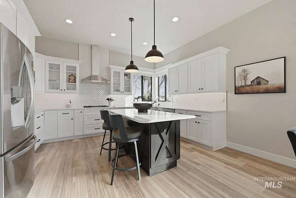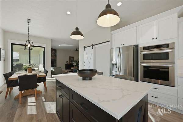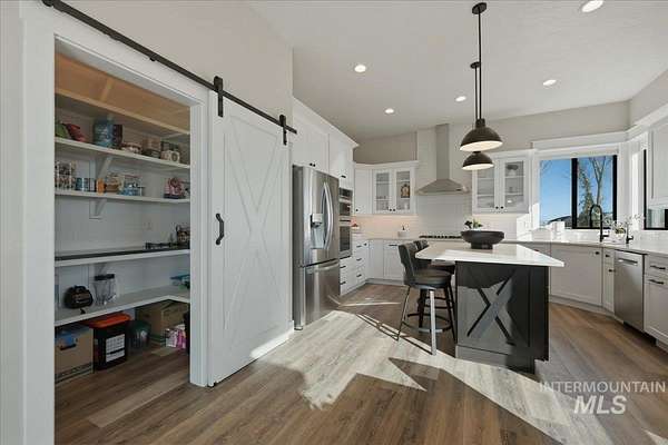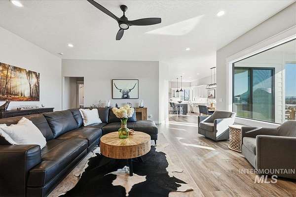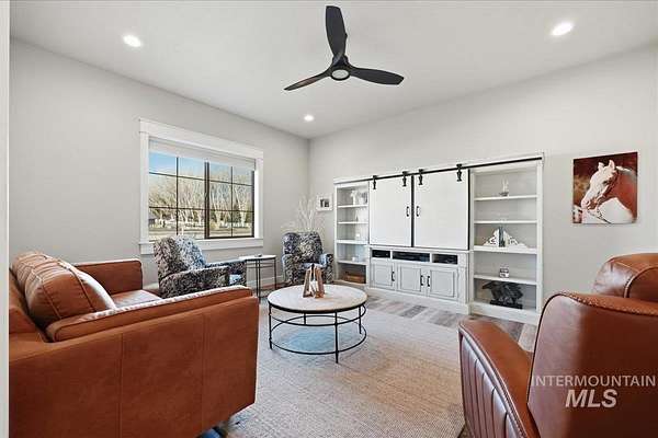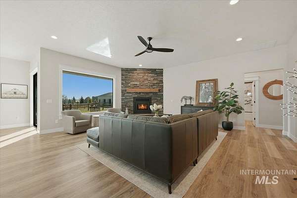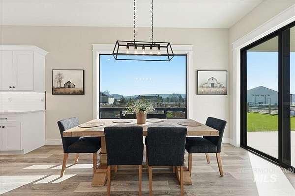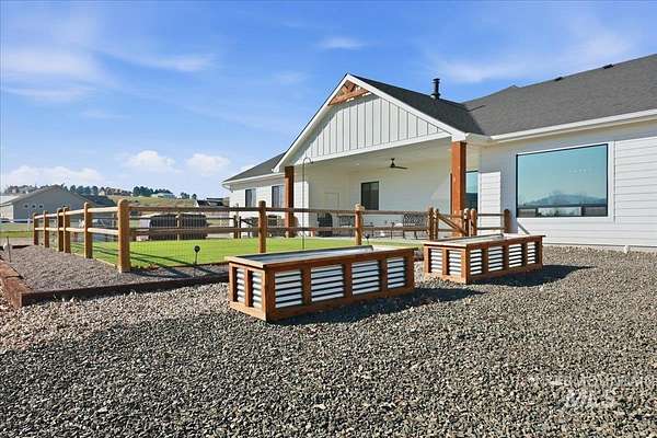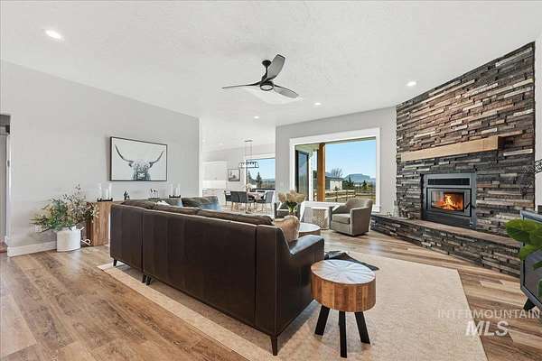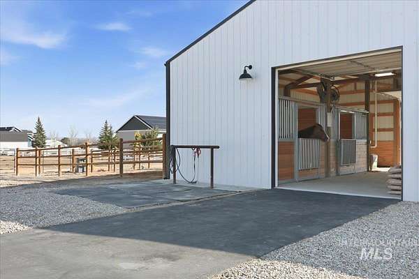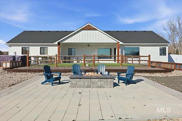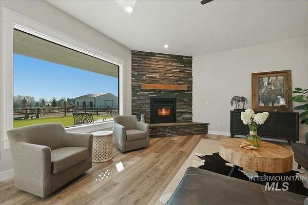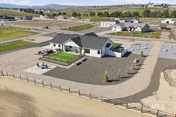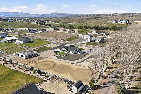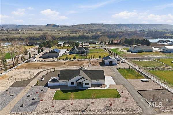 Modern luxury meets rustic tranquility in this stunning 2022-built equestrian retreat, perfectly situated on two acres just steps from the majestic Snake River. The single-level home welcomes you with an open, light-filled layout defined by elegant quartz countertops, tile finishes, and durable luxury vinyl flooring. A gourmet kitchen, complete with stainless steel appliances and a gas stove, flows effortlessly into a dining area boasting extraordinary views of the surrounding landscape. The vaulted family room, anchored by a cozy wood stove, offers the perfect space for relaxation. Steps outside is a new jacuzzi hot-tub w/ privacy fence and a custom gas fire-table. This one is a true horse-lover's paradise, featuring a professional two-stall barn with outdoor runs, a tack room, hay storage, and an interior/exterior wash rack, all overlooking your private riding arena. There is nothing like watching your horses from the back window in a setting of unmatched beauty. The grounds are meticulously maintained with a paved driveway, covered RV storage, and raised flower beds, balanced by partial xeriscape landscaping for effortless upkeep. With a state-of-the-art water filtration system, a new Onan backup generator for total peace of mind, you will enjoy being so close to so many recreational opportunities near the Owyhee range and Snake River.