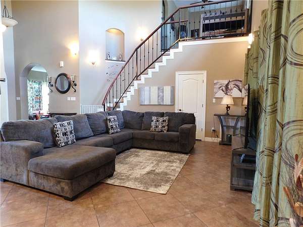 Want to live out in the country, but be just minutes from the city? This could be the perfect home! This is a beautiful 2-Story spacious 4 bedrooms, 3.5 bathrooms stucco home on approximately 5 acres. The home features an open floor concept. Wait until you see the beautiful curved staircase in this home that leads you to a tiled floor balcony that oversees the back acres. You will love the spacious kitchen with a expansive breakfast bar. There are two living areas, a formal dining room, and a separate office space. The primary bedroom is on the first floor. The primary bedroom features a spacious bathroom. There is a separate utility room and a spacious food pantry. This home has a spacious attached 2-car garage. Call today for more information.