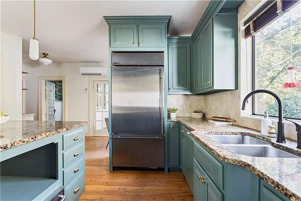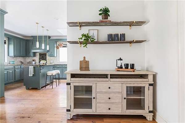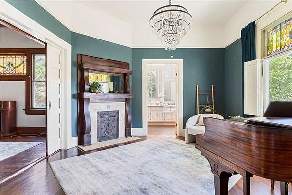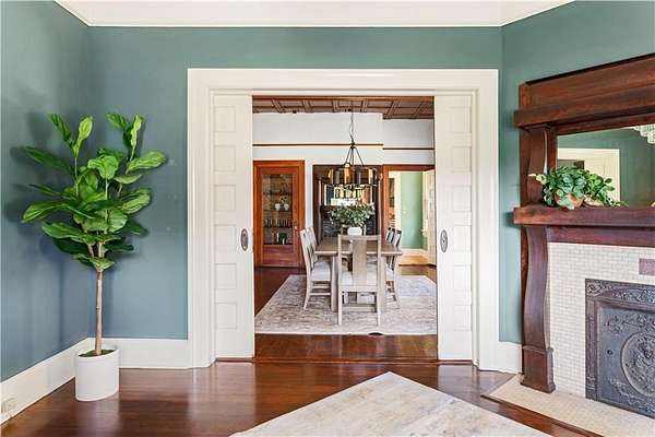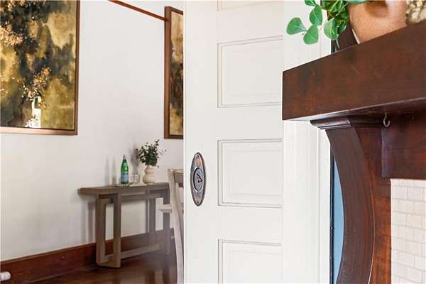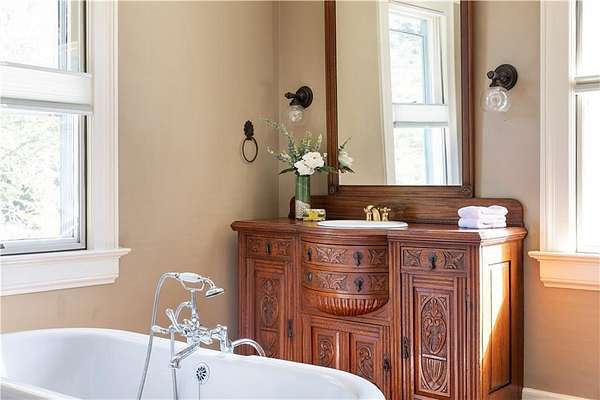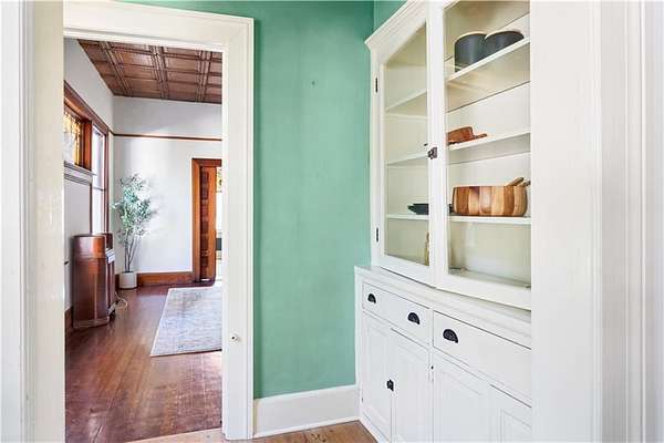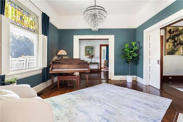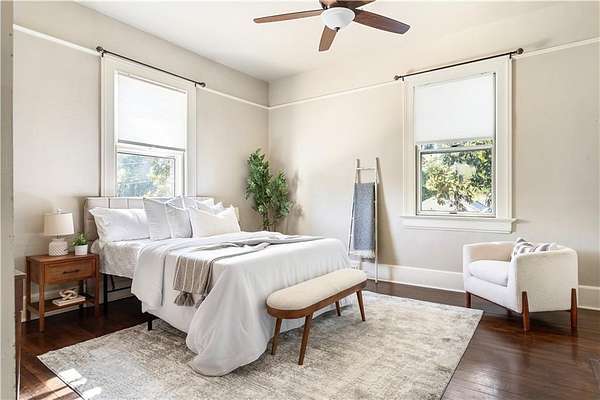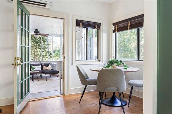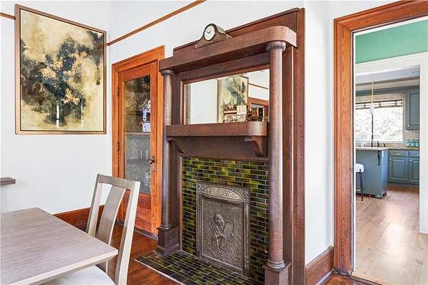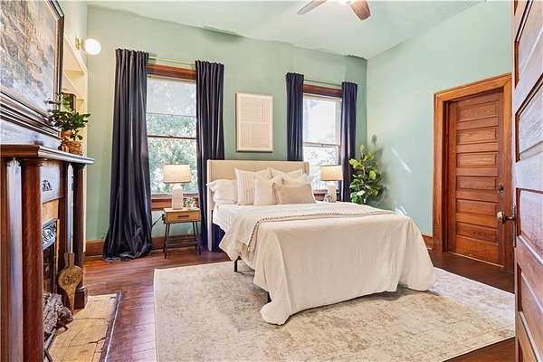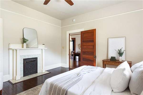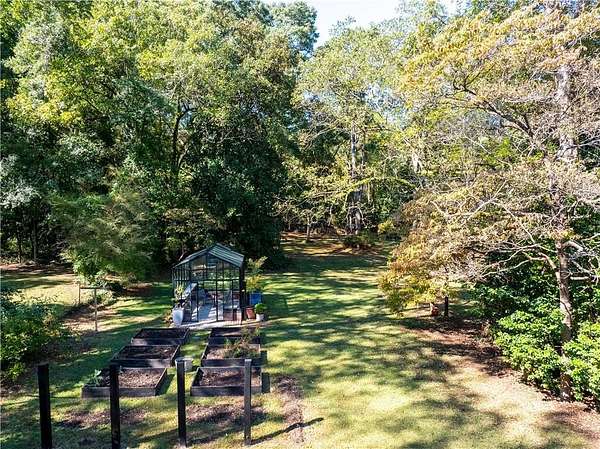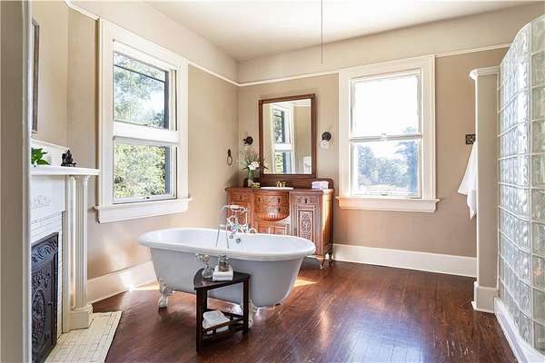 This remarkable American Foursquare residence is more than a home, it's a piece of Palmetto's history. Built in 1905 by former mayor Thomas P. Arnold and proudly listed on the National Register of Historic Places, this timeless property gracefully sits on 2.27 acres surrounded by mature trees, lush gardens, and the unmistakable charm of small-town Southern living. If you are an enthusiast of true-to-time period historic homes than this is the one for you. The quintessential southern rocking chair front porch invites you to slow down and stay awhile. Inside, you're greeted by a grand foyer, wide and warm, that sets the tone of the beauty that will unfold in the rest of the home. The original hardwood floors that carry throughout, and an exquisitely preserved staircase with rich wood balusters that tell stories of generations past, original doors, stained-glass windows, and fine millwork capture the craftsmanship of another era, while thoughtful updates make the home beautifully livable today. Original pocket doors connect gracious main-level spaces, a formal living room lined with built-in bookshelves, and a dining room anchored by a built-in glass-front whiskey cabinet. Every room reveals a detail to admire: intricate wood trim, vintage lighting, and fireplaces that lend depth and personality. Off the kitchen, a charming built-in hutch in the butler's pantry provides both function and character and a perfect spot for serving, display, or storage. The kitchen artfully blends period character with contemporary convenience, featuring painted cabinetry in a refined shade of green, granite countertops, brass accents, a 36" dual fuel range, a walk in pantry, an additional beverage cooler and space for casual dining. A full separate dining room is ideal for hosting gatherings, while the cozy breakfast nook in the kitchen overlooks the gardens for peaceful mornings. The flowing layout fosters easy connectivity between living spaces, yet each area maintains its unique appeal and identity. Enjoy a sunroom off the formal living room perfect for reading or reflection, and a screened-in back porch that invites you to enjoy outdoor living You can choose to make the bedroom downstairs the primary or upstairs, discover four spacious bedrooms and a hallway that feels woven into the home's story. The additional primary bedroom offers a walk-in closet, while the upstairs bath delights with its original clawfoot tub, vintage vanity, and even a fireplace, a rare blend of comfort and historic charm. Outdoors, the 2.27 acre property unfolds into wide lawns, garden beds, mature fruit trees, a storage shed, and two detached garages, providing both practicality and endless possibilities for creative projects or future expansion. Located just minutes from Serenbe, this home offers the best of both worlds, the tranquility of small-town living and immediate access to a vibrant destination for dining, arts, and nature. This home is an heirloom property, where preserved history and modern livability are perfectly balanced, ready for its next chapter.