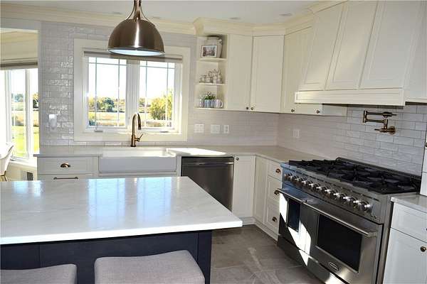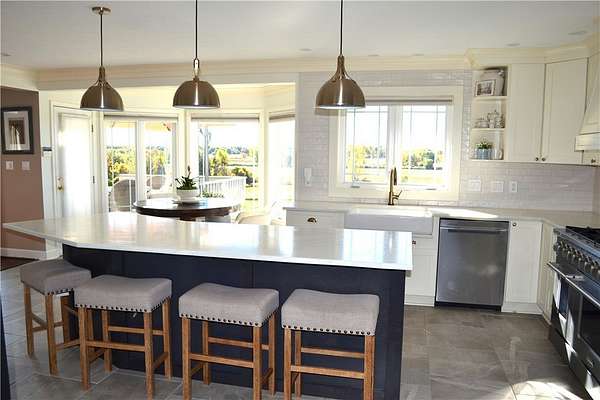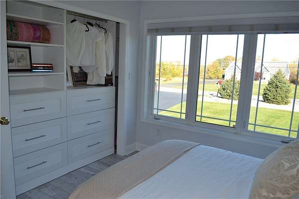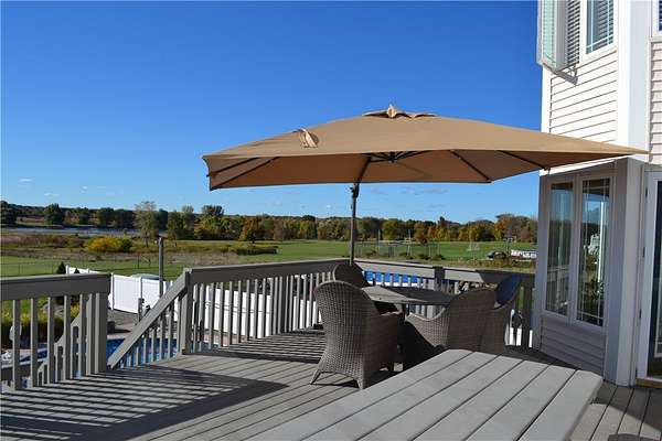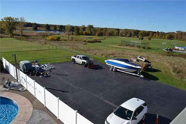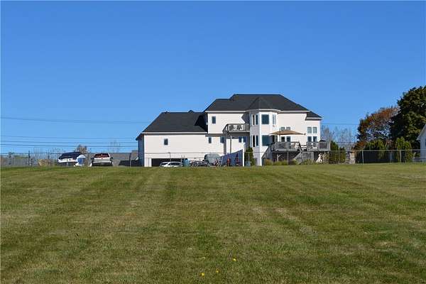 Discover a spacious four-bedroom home set on over 4 acres, with an extra acre of protected land for privacy and nature views. This former builder's home offers everyday practicality with luxury touches. The open floor plan makes daily living easy, with a dramatic two-story foyer and a cozy great room with a fireplace-perfect for family gatherings and relaxing evenings. The heart of the home is an expansive kitchen, where a full-length white marble island, honed to a unique leather-like texture, invites gatherings and culinary creativity. The kitchen flows into a dining room and a breakfast nook, offering walkout to an upper rear deck. The second-floor primary suite is a true retreat, featuring a wall of windows that frame breathtaking views of the expansive rear yard, a luxurious full bath, and a private balcony for tranquil mornings. The home's waterfront vantage point offers sweeping vistas of Braddock's Bay, enhancing the sense of serenity and exclusivity. Car enthusiasts and hobbyists will appreciate the innovative two-tier heated garage, boasting 1,100 square feet on both upper and lower levels, each with 8-foot doors and capacity for five vehicles. A huge workshop and expansive parking areas-accessible from both garage levels-make this property as practical as it is beautiful. Outdoor living is elevated with a multi-level deck that descends to a lower patio, a fully fenced rear yard, and an exterior kitchen with a built-in fireplace-perfect for entertaining or relaxing by the in-ground pool. Privacy fencing and lush landscaping create a resort-like atmosphere, ideal for vacationing at home. Additional highlights include a flexible first-floor bedroom or den, and a no-step lower-level in-law suite with two bedrooms, a separate kitchen, laundry/mud room, and direct access to the patio, exterior kitchen, pool, and lower garage. Modern upgrades-such as a 2021 architectural roof with transferable warranty, recent furnace and central air (~2019), a new hot water tank (2024), and central vacuum-ensure comfort and peace of mind. Delayed showings until 1/19/26 at 9 am, delayed negotiations until 1/27/26 at 3 pm. OPEN SAT 1/24/26 12-1:30 pm.