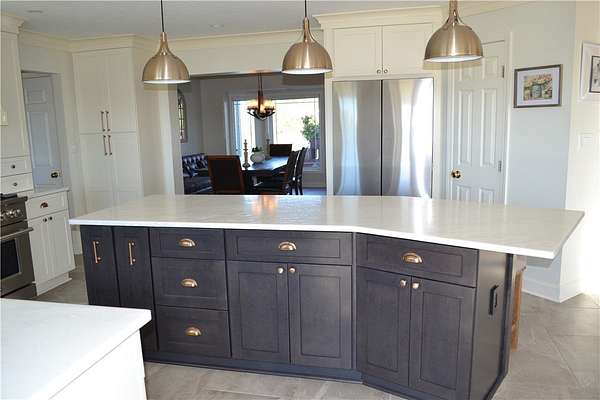 - Bath In Primary Bedroom, Bedroom On Main Level, Breakfast Area, Cathedral Ceilings, Ceiling Fans, Central Vacuum, Den, Eat In Kitchen, Entrance Foyer, Great Room, Guest Accommodations, In Law Floorplan, Kitchen Island, Pantry, Programmable Thermostat, Second Kitchen, Separate Formal Dining Room, Sliding Glass Doors, Solid Surface Counters