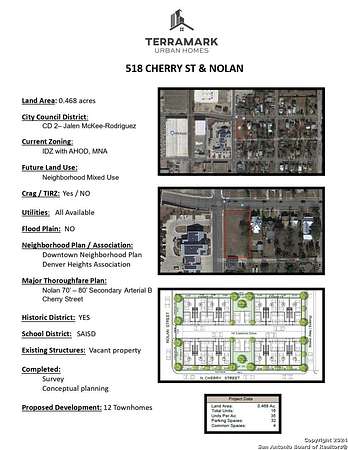 Est $4,158/moPrime development opportunity located on a hard corner in the sought-after Dignowity Hill district. This property comes with a survey, along with conceptual plans for the development of 12 townhomes. Zoned IDZ, offering a flexible range of potential uses, making it ideal for both residential and commercial projects.*3900 vehicles per day.*