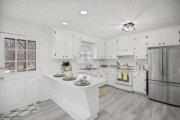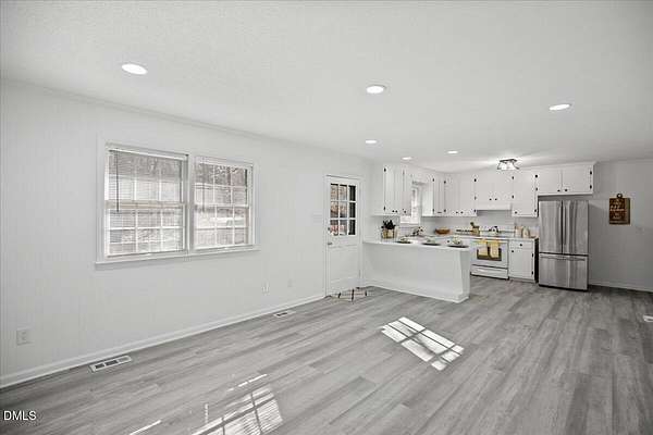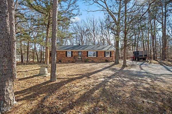 Welcome to your private retreat just 10 minutes from downtown Durham. Nestled on a 1.5-acre lot, this beautiful brick ranch offers timeless appeal in a peaceful setting. Enjoy the best of both worlds with county taxes while remaining close to downtown Durham and Duke University. This well-maintained home features three bedrooms and two full baths, along with an additional dining area that can easily serve as a home office or flex space. Step inside to find brand-new flooring and fresh interior paint throughout. The heart of the home is the open-concept kitchen and den, highlighted by a charming wood-burning fireplace-perfect for cozy evenings or entertaining. Outside, the spacious deck is ideal for gatherings, while the private, flat lot offers ample space to play, garden, or create the outdoor oasis of your dreams. Additional usable space and storage include a detached carport and shed, providing excellent functionality and flexibility. Outdoor enthusiasts will love the close proximity to the extended trail system leading to West Point on the Eno and Little River Regional Park, offering endless opportunities for recreation and adventure. Major updates have already been completed, including recent foundation work and a new roof installed in 2021. Just move right in and enjoy!