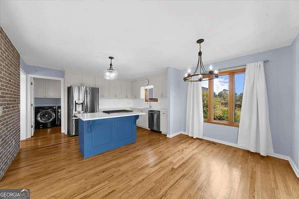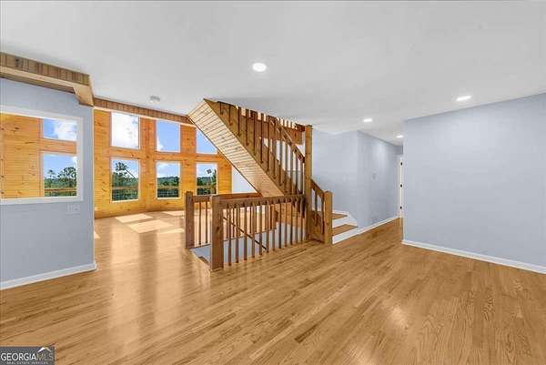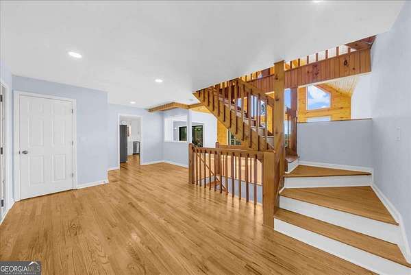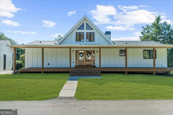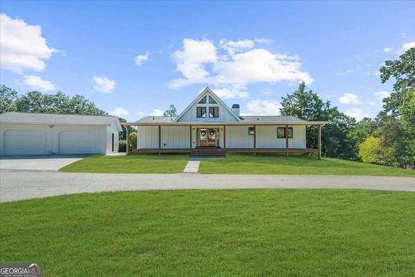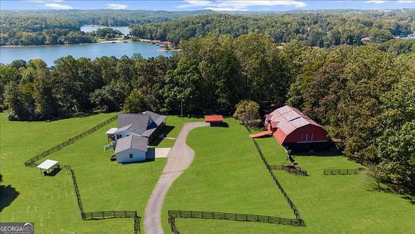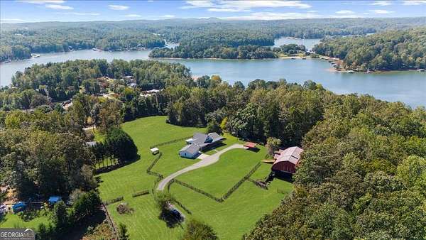 Why settle for land or the lake when you can have both at 518 Overlook Drive? The long, beautiful tree lined driveway leads you to your private gated estate on 7.93 acres with seasonal views of Lake Lanier. This is where you will escape the hustle and bustle life can be and relax at your very own sanctuary of rolling pastures in solitude with your family, friends and farm animals. As you drive in and feel the stress melt away, you are going to love walking up to the charming front porch overlooking the barn and pastures perfect for rocking chairs and a hot cup of coffee in hand. Step inside and be wowed by the soaring vaulted ceilings with natural light pouring through in the great room. Lovely 3" oak floors throughout the main level and loft. The primary bedroom is conveniently located on the main level with picturesque views, brand new, stacking sliding doors (that open all the way) leading to the expansive back deck, and an updated spa-like bathroom. The loft has views overlooking the pastures and lake making it a dreamy office space or an additional sleeping area. The bright and updated kitchen with stainless steel appliances flows into the screened porch where you can cozy up with a nice book and your favorite beverage. The main level also features an updated full bathroom along with a half bath. Make your way downstairs where there is a second kitchen, living room, bathroom and two additional rooms that can be used as bedrooms, home gym, theater, office, etc. This opportunity is rare for MANY reasons and one of those is because of its location being less than 5 minutes to GA-400 providing easy access to the North Georgia Outlets, restaurants and shopping galore in Dawsonville, 25 minutes to the Cumming City Center, and 20 minutes to the charming town of Dahlonega with wineries and hiking trails galore! Another feature that makes this property unique is that it is permitted for a swim platform dock perfect for launching your kayaks from your own backyard, or you can drive 1.5 miles around the corner to Nix Bridge Park and launch your boat from the boat ramp. You'll find a new platform dock in the barn, just waiting to be installed. No HOA means the world is your oyster! There are two road frontages which allows for future expansion whether that's adding additional homesites, a pool, cabana, or a horse arena. The massive barn includes an updated one bedroom apartment with fresh paint and carpet perfect for multi-generational living or potential rental income with a full kitchen, living room, bathroom, laundry room and a covered carport. If you need storage, the barn has no shortage of it on the upper level. The lower level of the barn features four stalls, concrete floors, a tack room with shower, an office and space for all the toys the outdoor enthusiast can dream of owning. Live the life you have been dreaming of right here at 518 Overlook Drive today!