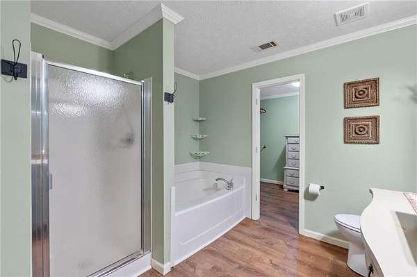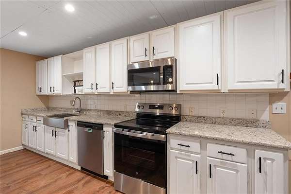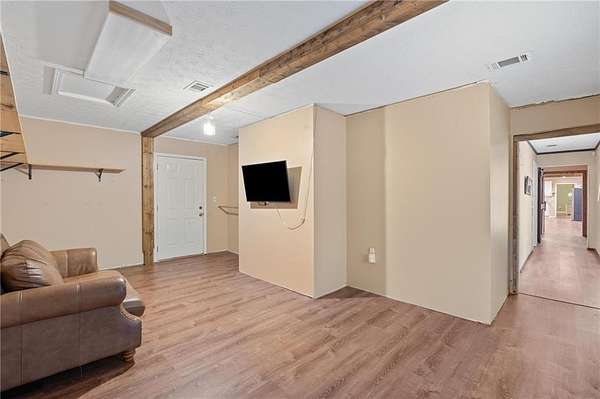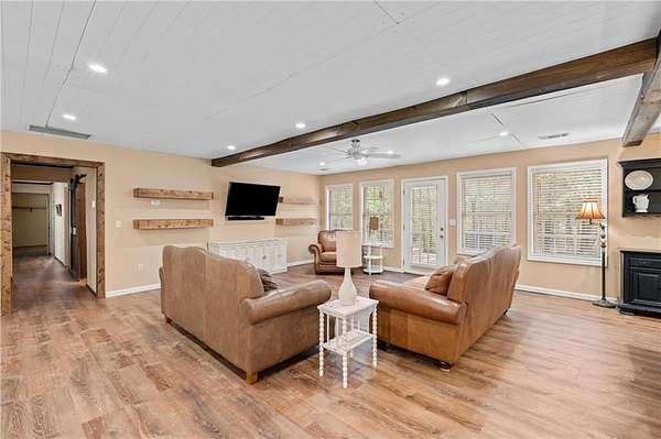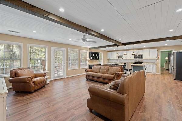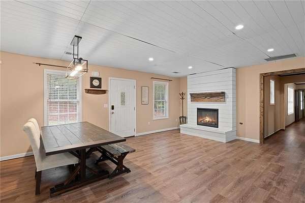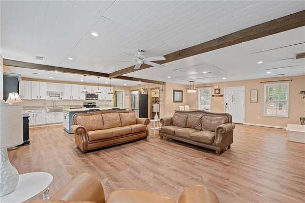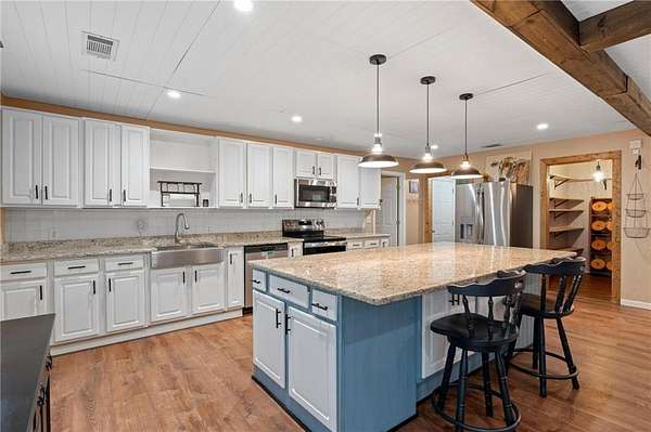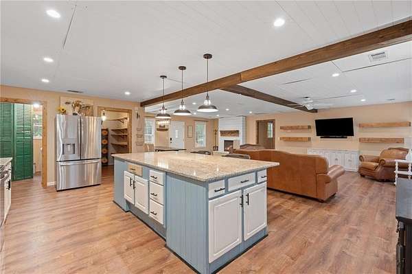 Charming Bungalow Ranch on Private, Wooded, 2+ Acre Lot - No HOA! Welcome to this inviting 3-bedroom, 2-bathroom ranch offering a peaceful retreat on a spacious, tree-lined 2+ acre lot. Bursting with character and modern farmhouse touches, this home has seen many updates yet still leaves room for your personal finishing touches. Inside, you'll find luxury vinyl flooring throughout and an open-concept layout ideal for everyday living and entertaining. The stylish kitchen features white shaker cabinetry, granite countertops, a large island with breakfast bar, and a generous walk-in pantry-all open to the dining area and cozy family room accented by a beamed ceiling. The oversized primary suite offers a walk-in closet and private en suite bath, while the secondary bedrooms share a charming hall bath featuring a classic clawfoot tub. Step outside to the back yard and enjoy the serene privacy of your own backyard oasis-perfect for gatherings, grilling, or quiet mornings with coffee. With its blend of updates, space, and opportunity, this home is ready for your finishing touches to make it truly shine!