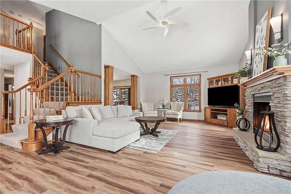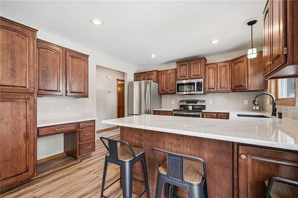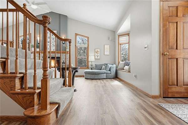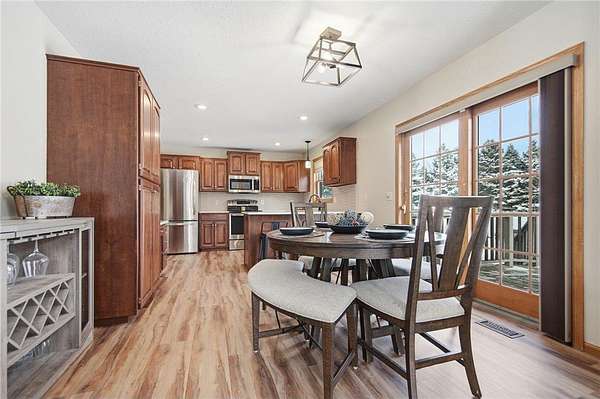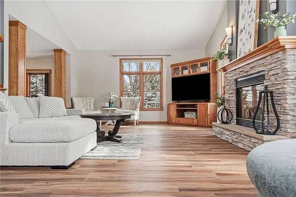 Tucked away at the end of a quiet cul-de-sac, this beautiful Hudson home sits on over 2 acres and offers the perfect mix of privacy and convenience—just minutes from Hwy 94. Inside, you’ll love the fresh, modern feel with brand-new LVP flooring and updated paint throughout much of the main level. The bright, vaulted family room with a cozy gas fireplace flows effortlessly into the dining area and updated kitchen featuring quartz countertops, stainless steel appliances, and stylish finishes. With a main-level bedroom, flex space, laundry, and ¾ bath, the layout is both functional and flexible. Upstairs, you’ll find three spacious bedrooms including a comfortable primary suite with a walk-in closet and private bath. The walkout lower level is built for entertaining and relaxing, complete with a large living area, billiards space, sauna, and tons of storage. Step outside and you’ll find your own private retreat—an expansive deck and patio, above-ground pool, built-in fire pit, and a flat, tree-lined yard that’s perfect for gatherings or quiet evenings at home.