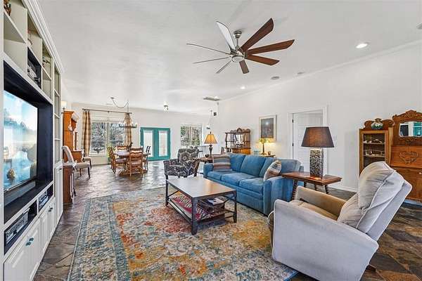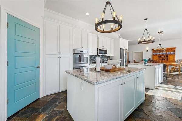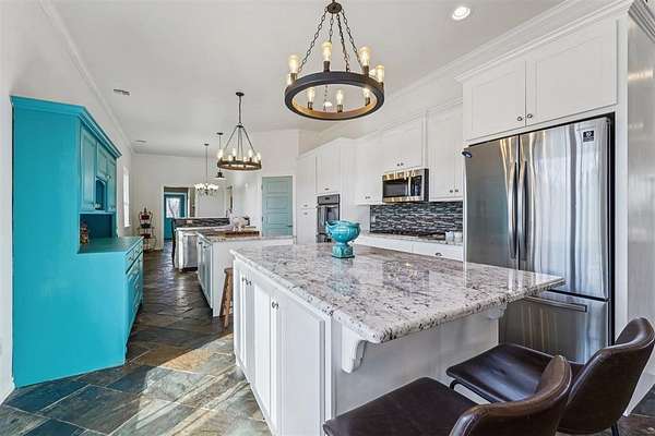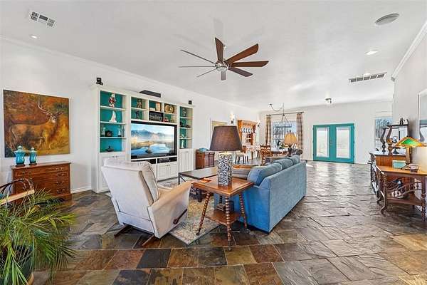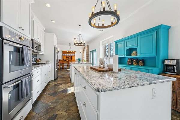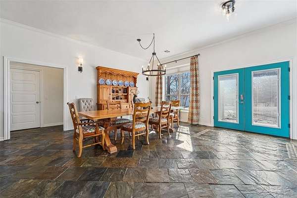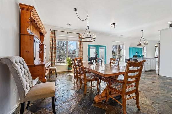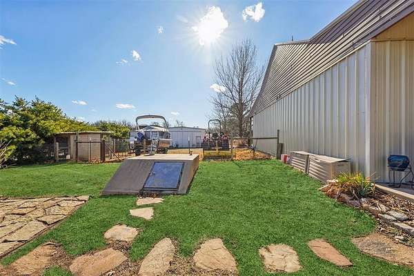 Designed as a private Oasis, 518 South Portland Avenue in Newcastle is a rare convergence of luxurious engineering, artistic expression & enduring craftsmanship, custom built in 2013 and surrounded by 10 acres of secluded Oklahoma landscape, just minutes from modern conveniences. Accessed by a private road shared by only four residences, this ICF-constructed Custom Built Home offers exceptional structural integrity, energy efficiency, and quiet comfort. Every aspect of the build reflects intentional engineering choices designed for longevity, performance, and daily ease. Inside, three bedrooms and 3 Bathrooms and a half bath balance openness with retreat. A spacious living room flows into a large dining area, ideal for everyday living and entertaining. A laundry area and side entry with a beautifully painted mud area add functional elegance. The kitchen features granite countertops, two oversized islands with cabinetry, a built-in gas cooktop, double ovens, and slate floors, creating a space that is both artistic and livable. The primary suite is privately positioned, showcasing painted artistic wood detailing, a whirlpool soaking tub, and an elegantly tiled shower. On the opposite side, two additional bedrooms are separated by a private hallway, with a secondary bathroom and custom-shelved closet between them. A central vacuum system is seamlessly integrated. Deer and wildlife are frequent visitors, reinforcing the property's sense of privacy and connection to the land without sacrificing modern comfort. Exterior features include metal siding and roof, covered front and back porches with exposed wood beams, an attached two-car garage, a one-acre pond, wooded acreage with a dam, open land, a 30' x 50' shop with concrete flooring, and an above-ground pool. Served by public water and natural gas. Tucked discreetly behind an existing development, the property unfolds into a world apart - your Oasis. Paradise isn't promised here. It's already present.