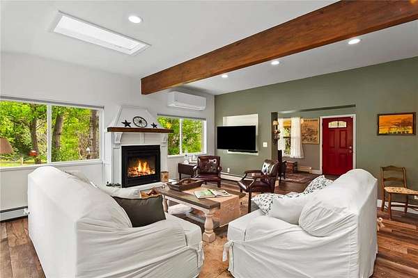 Thoughtfully renovated and move-in ready, this Treadwell farmhouse is set on 9.6 lush acres in one of Delaware County's most desirable locations-ideally positioned between the charming towns of Delhi and Franklin, and just 2.5 hours from the George Washington Bridge. Every major system and feature has been carefully updated, including the roof, gas fireplace, air conditioning, generator, kitchen appliances, washer and dryer, and detached garage-offering peace of mind and allowing the next owner to simply settle in and enjoy. A welcoming mudroom leads into a spacious, sun-filled kitchen with breakfast bar, perfect for slow mornings or casual entertaining. The living room is bright and inviting, centered around a gas fireplace and framed by sweeping views of open fields, mature trees, and a seasonal stream that traces the edge of the property-creating a landscape that shifts beautifully with the seasons. The 9.6-acre parcel spans both sides of the road, enhancing privacy and protecting the surrounding views. The bedrooms are generously sized and serene, with a particularly light-filled primary suite, while the bathrooms have been tastefully updated to reflect a clean, timeless style. Currently operating as a summer short-term rental, the property is conveniently located just 13 miles from All-Star Village in Oneonta, and within easy reach of the shops, dining, and year-round amenities of Oneonta, Delhi and Franklin-offering flexibility for a variety of uses. The grounds offer a mix of open lawn and natural landscape, with room to expand outdoor living, gardens, or recreational use. The setting strikes a balance between privacy and accessibility, making it equally suited for quiet enjoyment or hosting guests. Whether used as a full-time residence, weekend escape, or continued short-term rental, the property's combination of recent upgrades, usable acreage, and proximity to area destinations supports a variety of ownership goals.