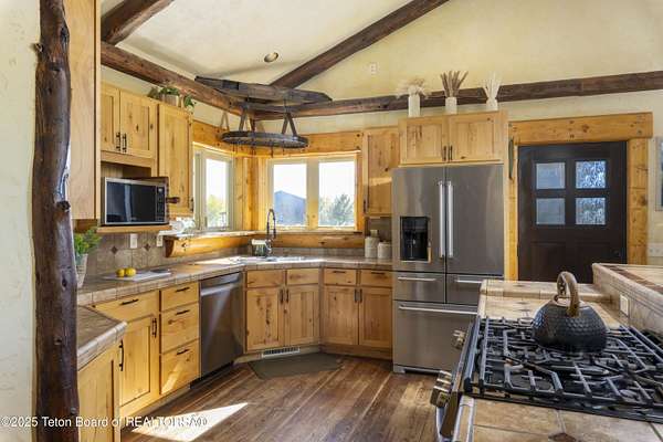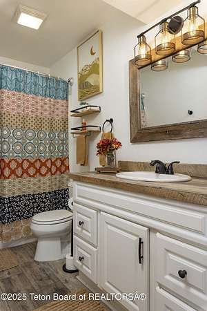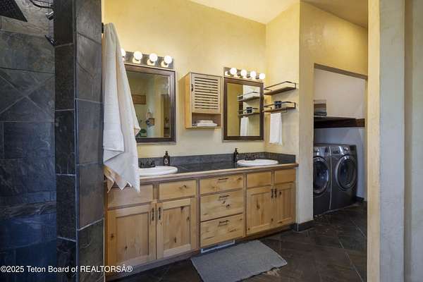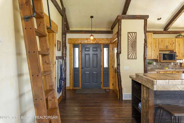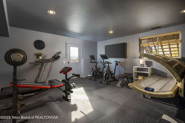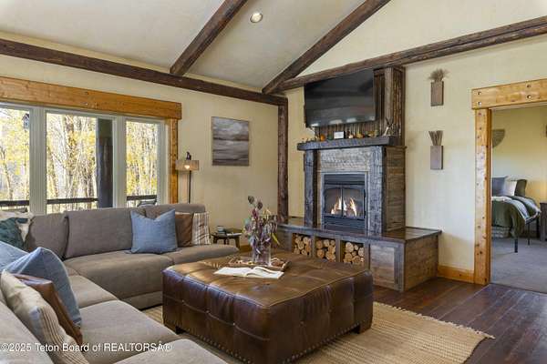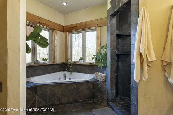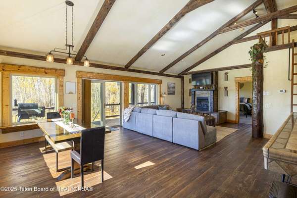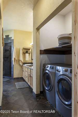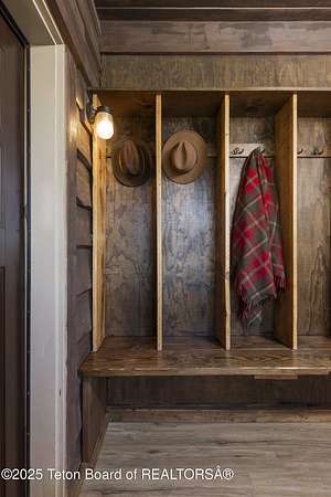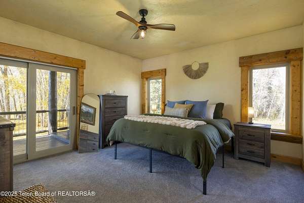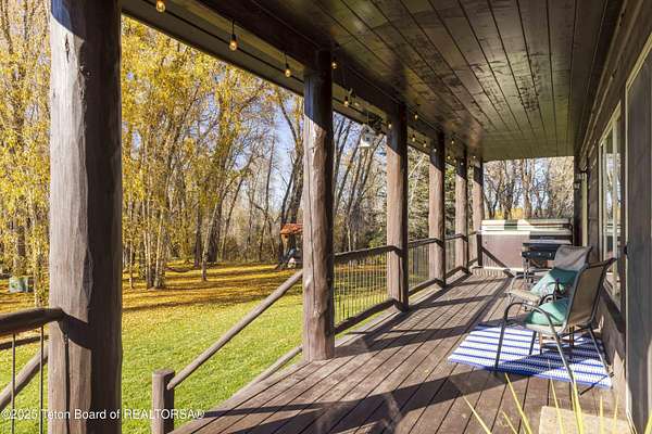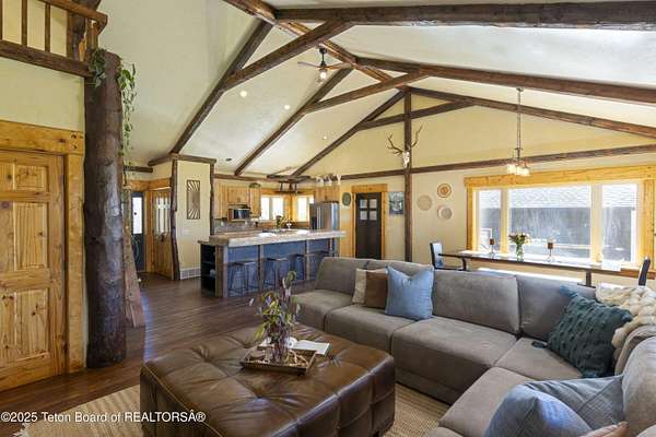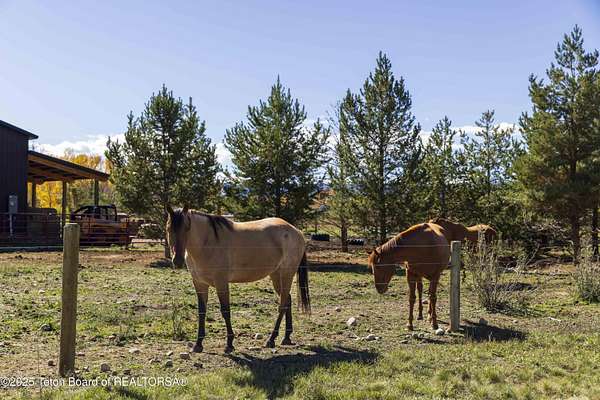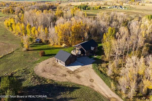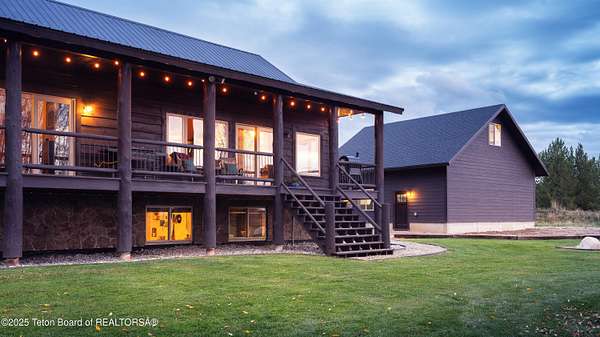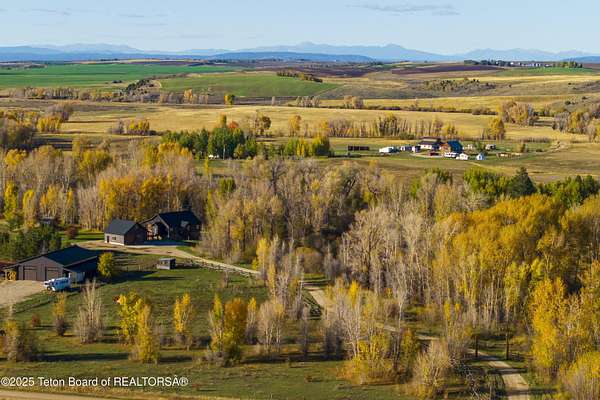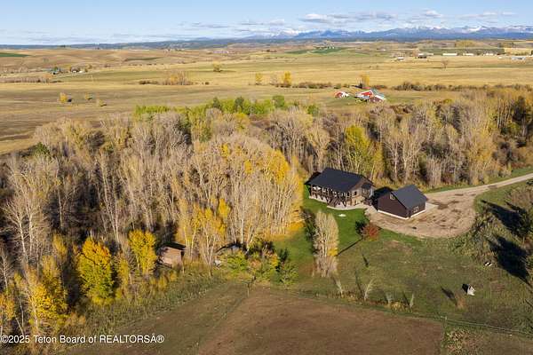 Set on 14.8 acres with Badger Creek winding through, this property combines privacy, natural beauty, and functional living space. The home and newly built garage/shop sit on an elevated bench overlooking the creek corridor lined with Cottonwoods and Aspen. Over a quarter mile of mowed trails meander through the property, crossing small bridges and leading to the water's edge, perfect for dog walks or quiet reflection. Inside, rustic charm meets open-concept living with a main-floor primary suite and spa-like bath. The daylight lower level features three bedrooms, a full bath, office, and large flex space with exterior access, ideal for media, fitness, or a guest suite/ADU. The property is not in a subdivision and has no CC&Rs, offering rare freedom in a stunning setting.