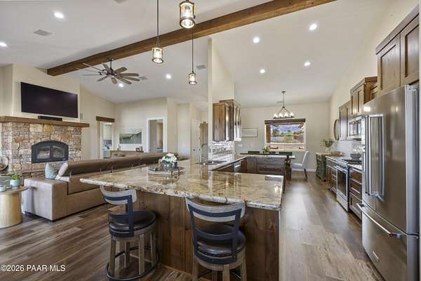 Welcome to your private oasis in the heart of Williamson Valley, ''Nature's Creek''. This impressive property spans 6.77 acres and features a custom 4-bedroom, 3-bathroom home with a generous split floor plan covering 2,487 sft, inside you'll find a thoughtfully designed layout that includes a wood -burning fireplace as a focal point. The entire home boast luxury vinyl plank flooring, proven both elegance and durability throughout the living spaces. The home is also complemented by beautiful modern cabinetry, granite countertops stainless steel appliances walk-in pantry and coffee - bar area complete whit a built-in wine cooler!Step outside where you can enjoy the expansive grounds, like the outdoor living area with yet another woodburning fireplace and saltwater hot tub and stunning views!For your outdoor enthusiast, this property offers a 2,100 sft. metal building, bring your toys because there is plenty of room, and full hook ups for RV guest!Don't miss the chance to own this unique honey hole located in Williamson Valley, Nature's Creek-Your true sanctuary awaits!
