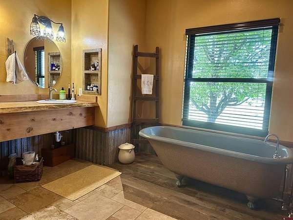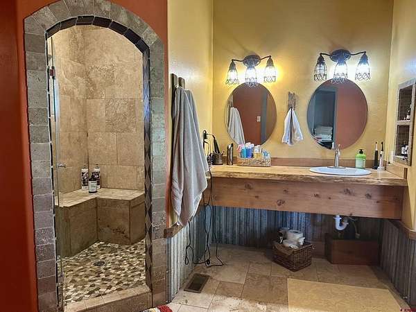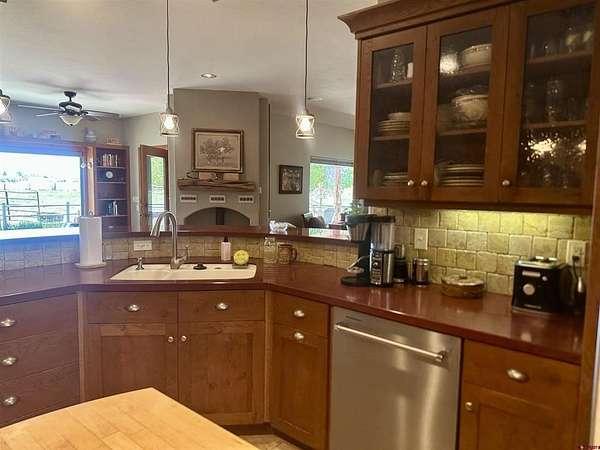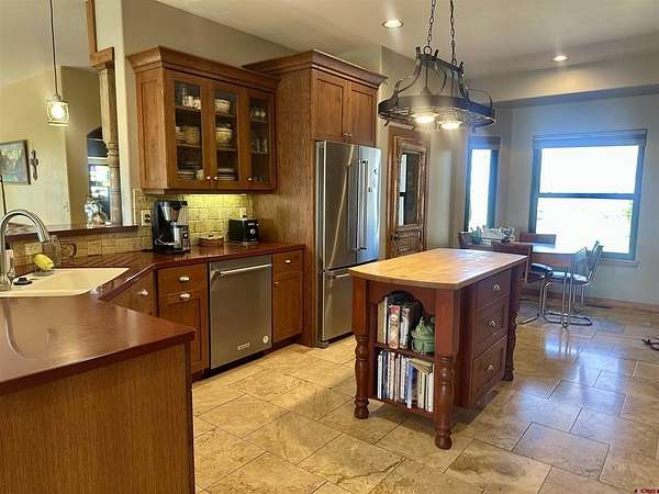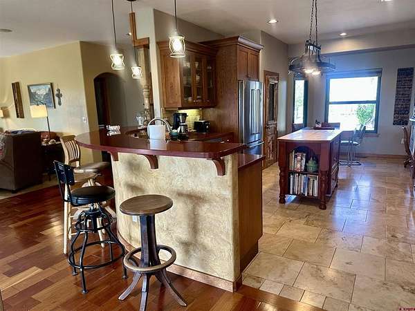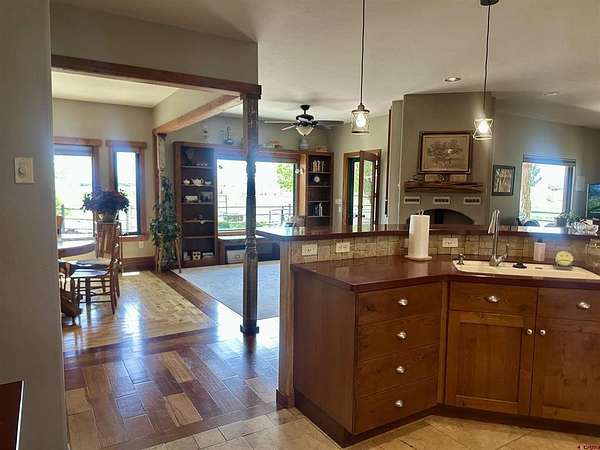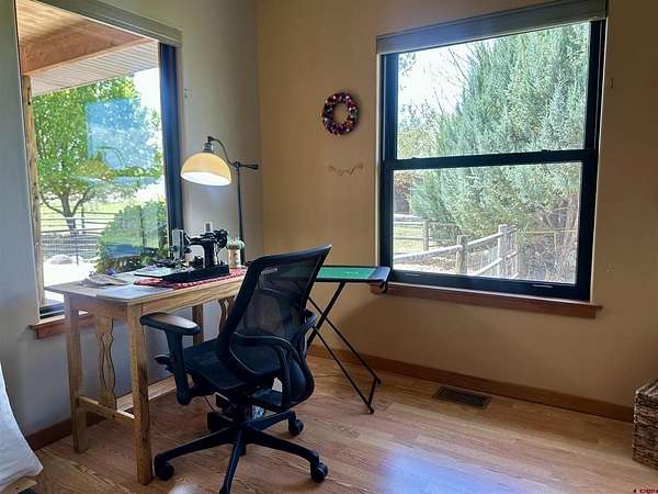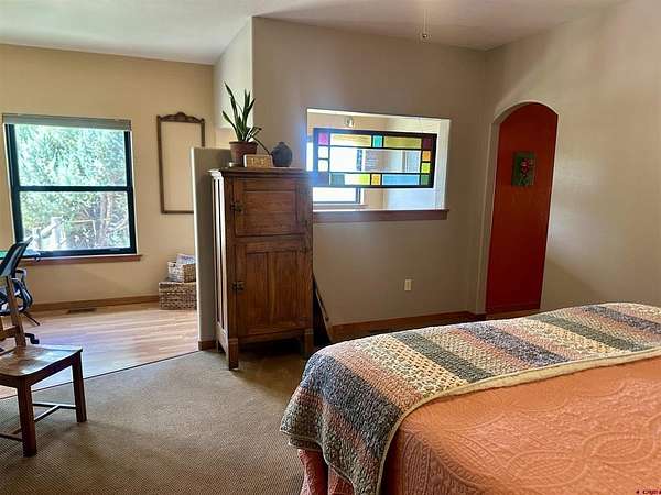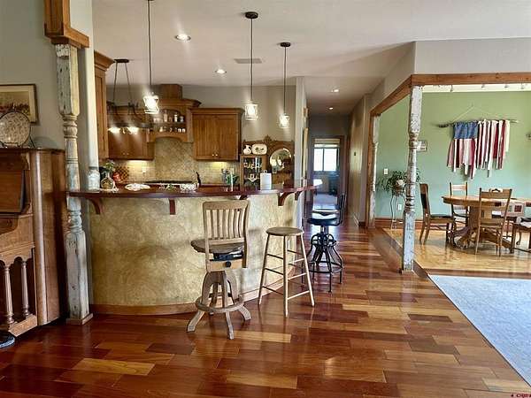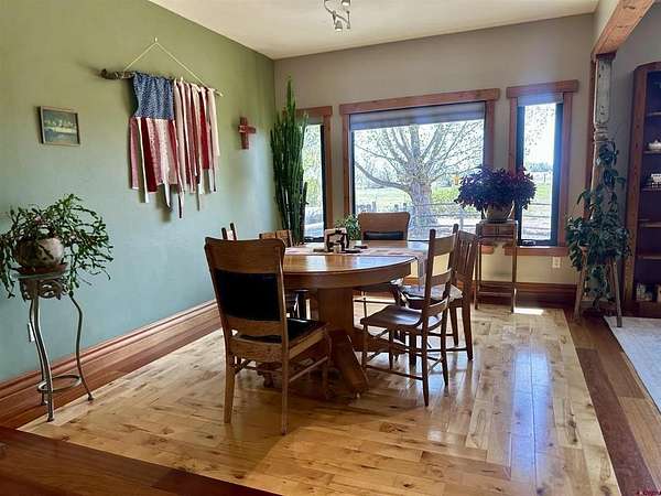 Mark J Covington, RE/MAX Alpine View, C: 970-209-1956, markcovington@remax.net, http://www.markcovington.remaxagent.com: Set on 33.8 acres with 23 shares of irrigation, and views of the San Juan Mountain views, this 2,395 sq. ft. stucco home is accompanied by a barn with apartment, corrals, pastures and offers space, privacy, and versatility. The main residence features 3 bedrooms and 2.5 baths, with new windows that flood the home with natural light and frame the surrounding landscape. A pellet stove anchors the living room, while custom finishes add warmth and character throughout. The kitchen is both functional and inviting, with white oak cabinetry, a bar-top seating area, pantry, and cozy dining nook. A built-in desk creates a convenient workspace tucked neatly into the corner. A separate dining space provides generous space for entertaining and showcases stunning southern views through a large picture window.The primary suite includes a flexible bonus area—ideal for a sitting room, reading nook, or creative space—along with a walk-in closet, clawfoot tub, and walk-in tile shower. Secondary bedrooms share a central shower while each maintains its own sink and counter space for added convenience.The property is set up in a conservation easement and is well-equipped for rural living with approx. 32 irrigated acres, corrals, RV hook up/RV dump, a garden area, and chicken coop/storage space. The insulated barn houses an approximately 500 sq. ft. apartment, a studio area, lofted storage, and a concrete-floor shop—perfect for guests, rental income, or workspace needs.Set back from the main road and surrounded by mature landscaping, this property offers exceptional privacy and a rare combination of comfort, functionality, and breathtaking views.