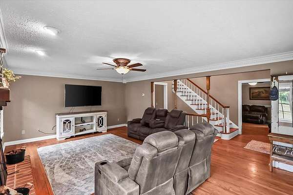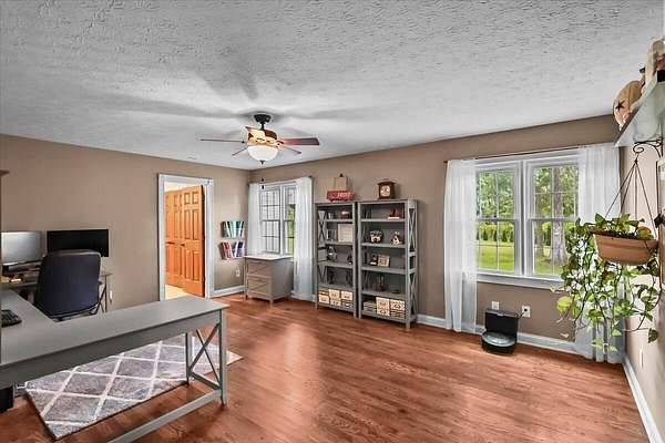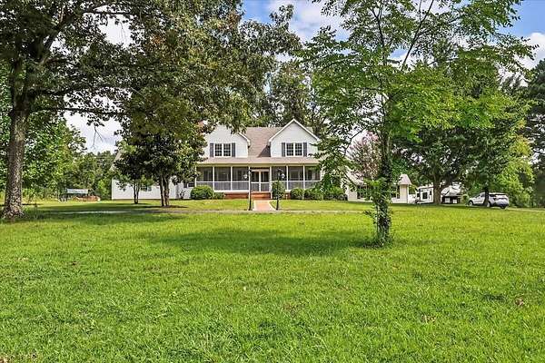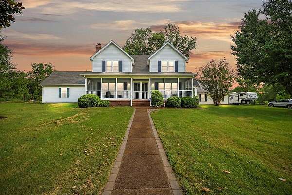 Welcome to 5186 Veterans Memorial Highway, where 5 + acres, a pond, and over 3,100 square feet of living space comes together to create the perfect blend of comfort and country charm. Conveniently located between Scottsville and Bowling Green, this property offers privacy without sacrificing accessibility. Start your mornings on the screened-in front porch or spend quiet afternoons taking in the peaceful scenery by the pond. Inside, you'll find a warm and inviting living room with a wood-burning fireplace (propane hookup available), a spacious kitchen with breakfast nook and pantry, a formal dining room, and a main-level primary suite with an attached bonus / office / flex room. The upstairs features three additional bedrooms, a full bathroom, and a large bonus / storage area ideal for hobbies or overflow space. Outside, the property truly shines with a large deck perfect for entertaining, two detached garages, a greenhouse for year-round gardening, and a chicken coop ready for your feathered friends. A wonderful opportunity to own spacious acreage and a versatile home in a beautiful rural setting. This property has it all!