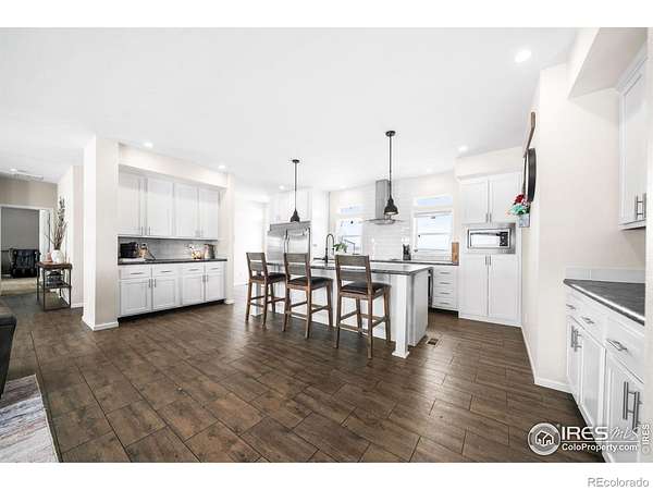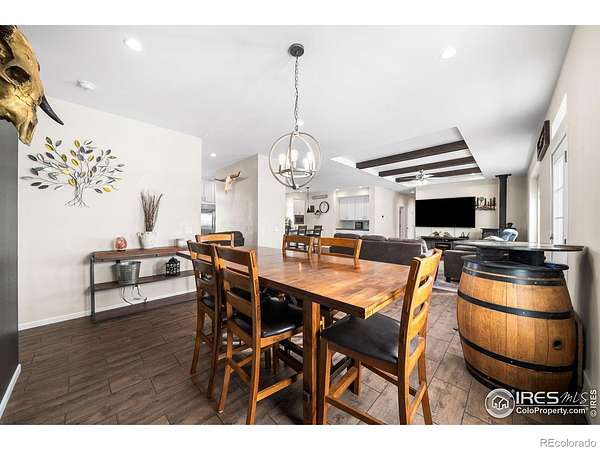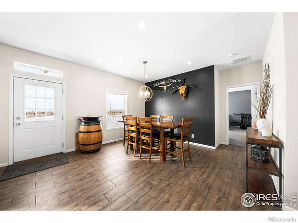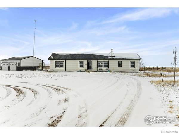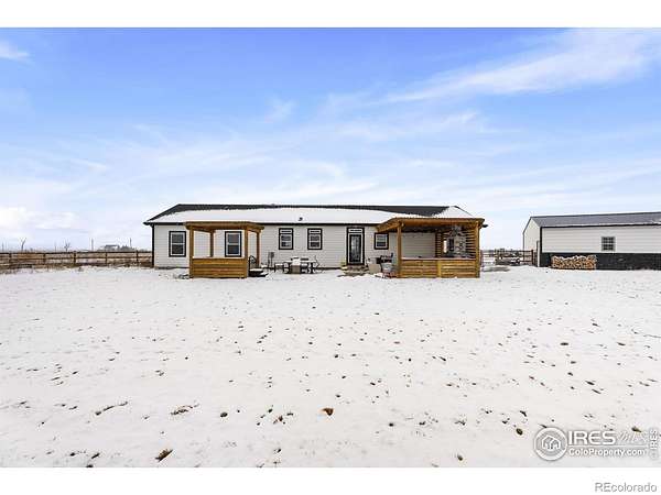 Beams Ranch offers the ideal balance between wide-open rural living and convenient access to Northern Colorado communities. Set on more than 45 fully fenced acres, this property is designed for those seeking freedom, functionality, and a true agricultural lifestyle. A welcoming circle drive sets the tone as you arrive to a residence offering over 4,500 finished square feet, including a fully finished basement, 5 bedrooms, and the option for a 6th bedroom or private office behind French doors. Wood-beam accents and a wood-burning fireplace create a warm, rustic atmosphere, while durable LVP flooring and a spacious mud room with its own entrance make daily farm chores easy to manage. The open kitchen features double ovens, stainless appliances, extensive prep space, and a modern subway-tile backsplash, making it ideal for large meals or simple mornings at home. Beams Ranch is fully equipped for hobby farming or expanded agricultural use, featuring fenced pastures w/electric fence, 3 automatic waterers for livestock, and a 3-stall barn with exterior runs, power, and water. Additional improvements include a working silo, two auxiliary silos, a 40x30 barn with oversized doors, a 60x40 heated quonset hut with a loading area, and a 220x110 riding arena. RV parking and hookups add convenience, while a filtered well, septic system, and more than $60,000 in solar panels offer the option of true off-grid living. The finished basement provides an exceptional entertainment area complete with a projection system and screen, and outdoor living spaces include a private covered patio with a wood-burning chimenea, an east-facing rear patio, and a manicured fenced backyard with a salt water hot tub that conveys with the sale. Combining comfort, functionality, and sweeping rural beauty, Beams Ranch is a rare opportunity to embrace the Front Range lifestyle with room to live, grow, and breathe.