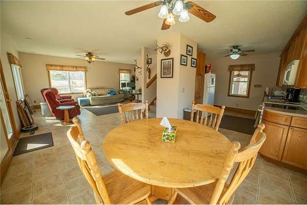 Set on 10 peaceful acres (with more land available to purchase if interested), this charming two-story home offers the perfect blend of space, comfort, and privacy. Featuring 3 bedrooms and 2 bathrooms, the home boasts an open floor plan filled with abundant natural light. The spacious kitchen includes ample cupboard storage and flows seamlessly into an informal dining area—ideal for everyday living and entertaining.
