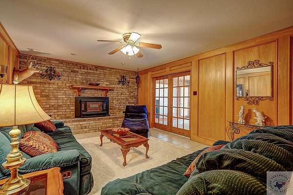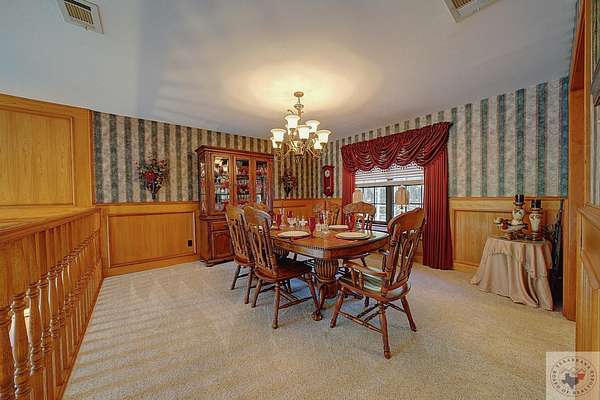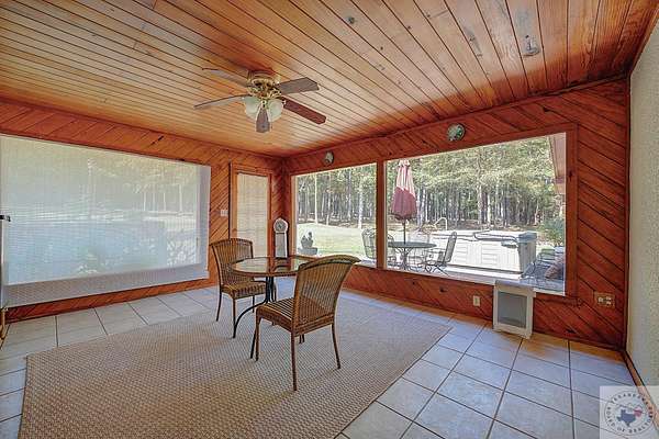 - Ceiling Fan(s), High Ceilings, Paneling, Wallpaper