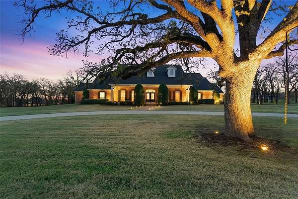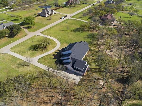 LUXURY MEETS COUNTRY LIVING ON THIS INCREDIBLE 2.5 ACRE PRIVATE, WOODED LOT IN THE HEART OF ARGYLE. Tucked beneath a canopy of mature trees and located within the award winning Argyle ISD, and just minutes from Liberty Christian, this beautifully maintained home offers both space and serenity in a truly special setting. A GRAND ENTRY welcome you, flanked by an impressive library and formal dining room. The main living area features built-in bookcases, a gas fireplace, and large windows overlooking the peaceful backyard. The chef's kitchen is complete with gas cooktop, double ovens, built-in refrigerator, prep sink, and abundant cabinetry. INCREDIBLE FLOOR PLAN includes a spacious primary suite with its own fireplace and a luxurious en-suite bath. Three additional bedrooms and two full baths located on the main floor. Upstairs offers a private guest retreat or flexible living space, complete with a large game or media room, bedroom, and full bath. Additional highlights include extensive storage throughout, a walk-in attic, and a HUGE 4 CAR GARAGE with sink and extra storage space. This property truly feels like a retreat. PEACEFUL, PRIVATE, AND BEAUTIFULLY MAINTAINED, all in one of Argyle's most desirable areas.
