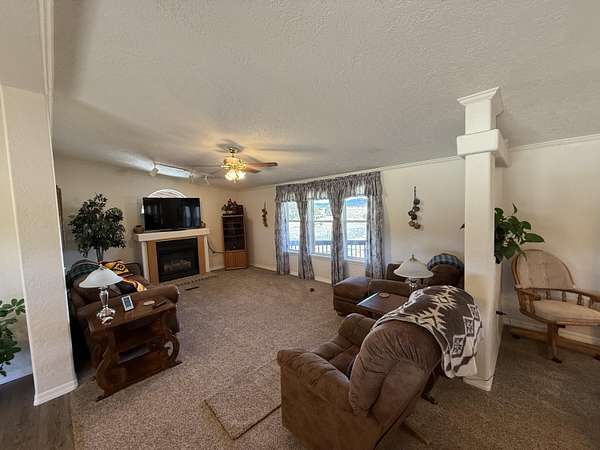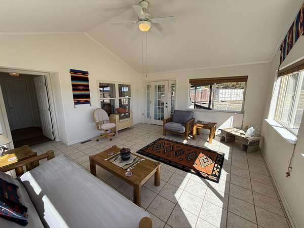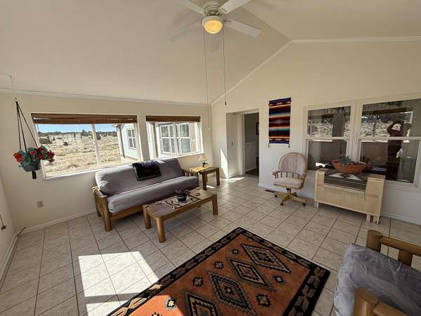 Nestled on 21.31 Ac. this move in ready 2,504 SF. home offers an exceptional living experience. Located just 5 miles north of Pie Town known for it's dark starry skies. With breathtaking views of the Sawtooth Mountains, this property is a perfect blend of comfort & nature, ideal for those seeking peace & tranquility. Boarding State land to the west & north. The 320 sf. sunroom provides an inviting space to relax while you enjoy New Mexico Enchanted sunsets. This 3 BR, 2 full bathrooms offers new Carpet & HD Luxury Vinyl flooring throughout. Updated appliances, The living areas include a large living room, a formal dining room, & a cozy family room. A gas log fireplace adds warmth & ambiance, perfect for chilly New Mexico evenings. Large kitchen with an island & built in china hutch