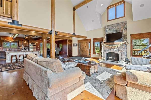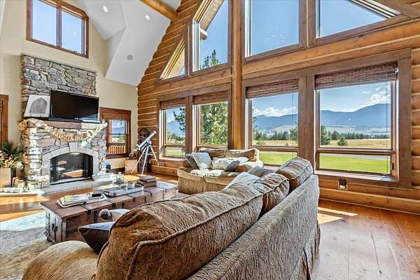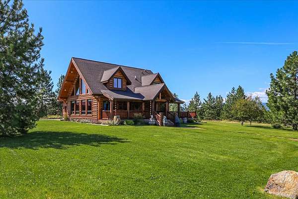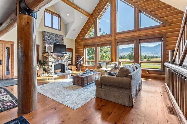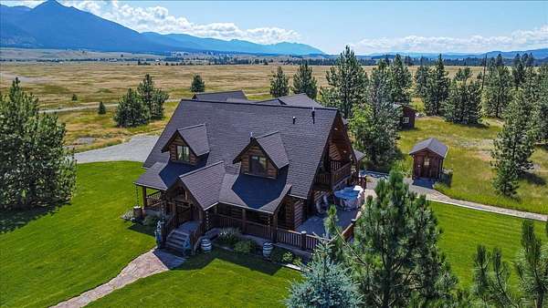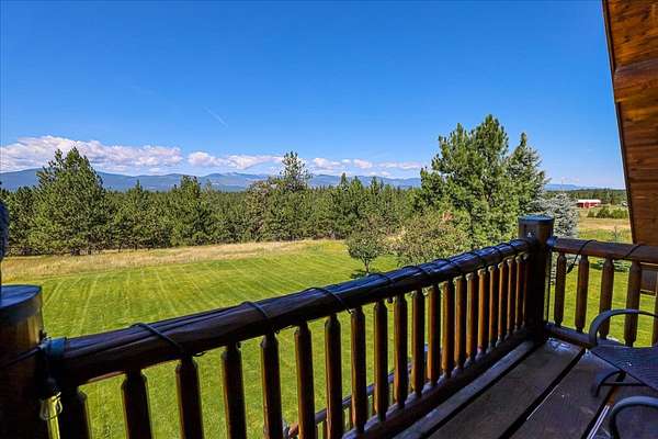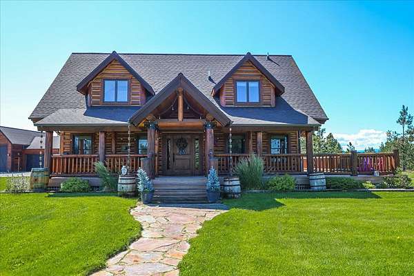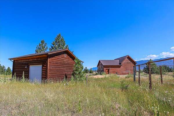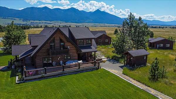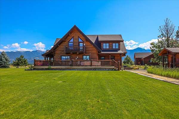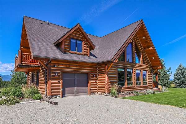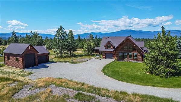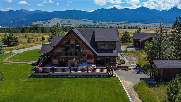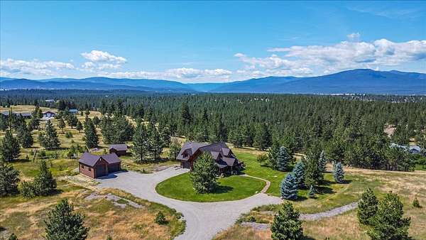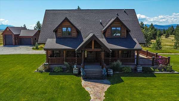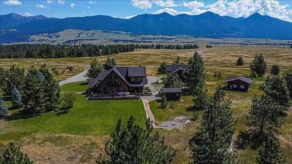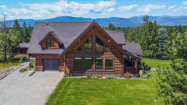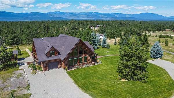 Escape to luxury in this stunning custom-built log home nestled on over 10 partially wooded acres, where rustic elegance meets modern comfort. Soaring ceilings and expansive windows fill the home with natural light and showcase breathtaking views of the Whitefish and Purcell mountain ranges. The gourmet kitchen features elegant granite countertops, a 5-burner gas range, and a striking copper farmhouse sink, centered around an enormous island perfect for entertaining. Custom hardwood floors, exposed log beams, and a spacious open layout create a warm, inviting atmosphere. Step outside to wrap-around decks ideal for relaxing or hosting guests while soaking in the spectacular mountain views. Enjoy privated deeded access to Sophie Lake and Moran Lake! Outdoors you'll find a large fenced garden with established fruit trees and berry bushes, plus ample storage for all your gear: an attached garage, a detached garage with a high-clearance bay, a shop, and dedicated RV parking with 50-amp service. After a day on the slopes, unwind and rejuvenate in the warmth of your sauna. 2 primary suites with ensuite full bathrooms--one featuring full laundry--and each with a private upper balcony. Immerse yourself in the full cinematic experience in your home theater room with premium surround sound system. Central vacuum and underground sprinklers make upkeep a breeze. All furniture shown in the photos is included! This rare property is the ultimate retreat for those seeking space and the ultimate Montana lifestyle. Call your real estate professional today to schedule your private tour!