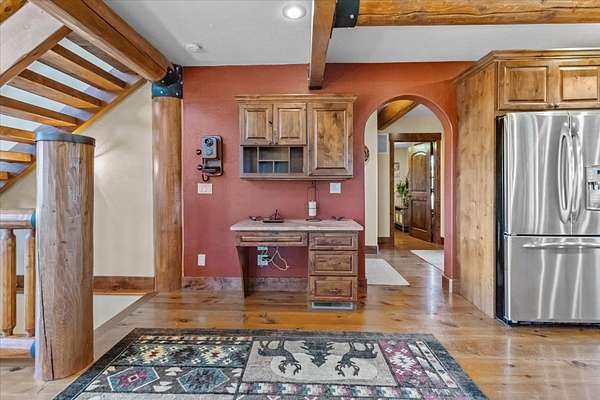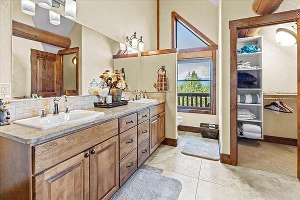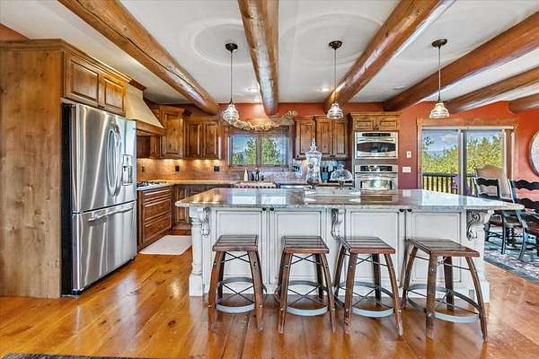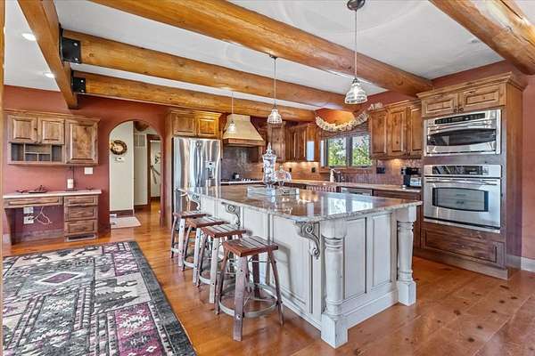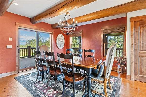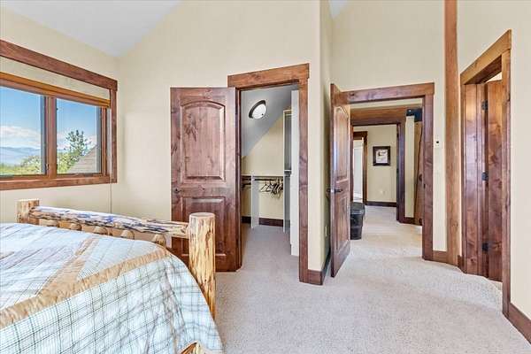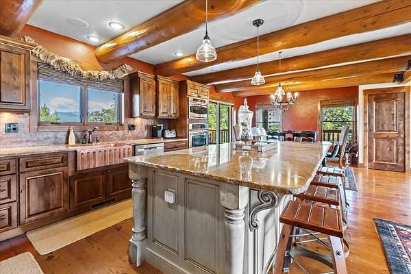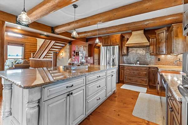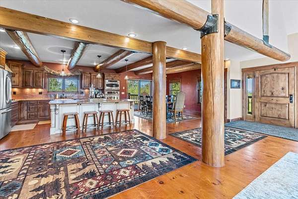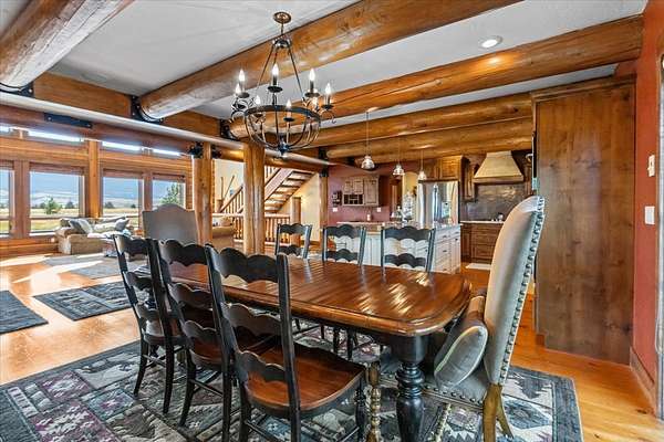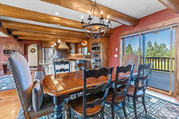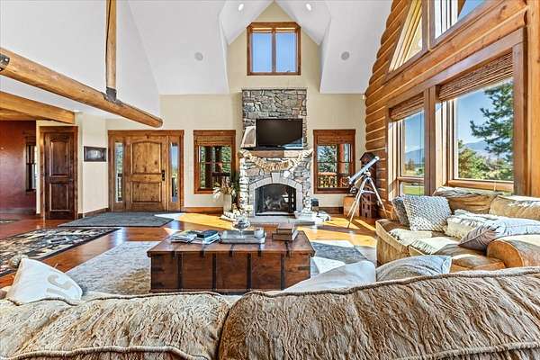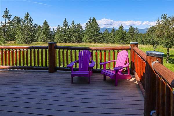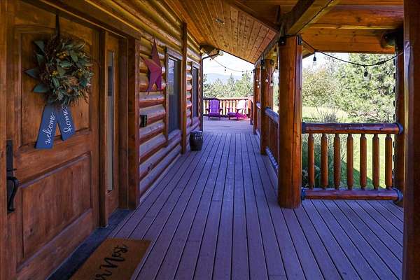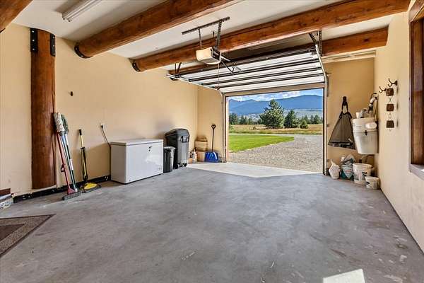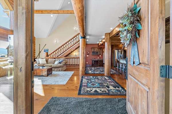 Escape to luxury in this stunning custom-built log home nestled on over 10 partially wooded acres, where rustic elegance meets modern comfort. Soaring ceilings and expansive windows fill the home with natural light and showcase breathtaking views of the Whitefish and Purcell mountain ranges. The gourmet kitchen features elegant granite countertops, a 5-burner gas range, and a striking copper farmhouse sink, centered around an enormous island perfect for entertaining. Custom hardwood floors, exposed log beams, and a spacious open layout create a warm, inviting atmosphere. Step outside to wrap-around decks ideal for relaxing or hosting guests while soaking in the spectacular mountain views. Enjoy privated deeded access to Sophie Lake and Moran Lake! Outdoors you'll find a large fenced garden with established fruit trees and berry bushes, plus ample storage for all your gear: an attached garage, a detached garage with a high-clearance bay, a shop, and dedicated RV parking with 50-amp service. After a day on the slopes, unwind and rejuvenate in the warmth of your sauna. 2 primary suites with ensuite full bathrooms--one featuring full laundry--and each with a private upper balcony. Immerse yourself in the full cinematic experience in your home theater room with premium surround sound system. Central vacuum and underground sprinklers make upkeep a breeze. All furniture shown in the photos is included! This rare property is the ultimate retreat for those seeking space and the ultimate Montana lifestyle. Call your real estate professional today to schedule your private tour!
