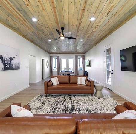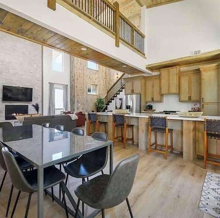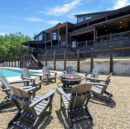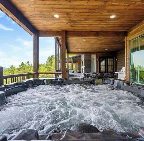 Skydive" in an exceptional luxury cabin designed for comfort, entertainment, and unforgettable gatherings. Perfect as a private retreat, vacation home, or high-performing short-term rental, this spacious property blends upscale amenities with breathtaking scenery. Step inside to an expansive open-concept living area featuring soaring ceilings, abundant natural light, and panoramic views that stretch for miles. The chef's kitchen is fully equipped with premium appliances, generous counter space, and a large island ideal for hosting family and friends. The adjoining dining and living areas create the perfect setting for relaxing after a day of adventure. The home comfortably accommodates large groups with 5 private king bedroom suites, each designed for privacy and relaxation, along with a large bunk room featuring 5 queen beds and 3 twin-over-twin bunk sets-perfect for kids, extended family, or group stays. With 7 beautifully appointed bathrooms, guests enjoy both comfort and convenience throughout the home. Entertainment is endless with a dedicated game room equipped for hours of fun-ideal for rainy days or evening gatherings. Step outside to your own private resort-style setting. The heated pool overlooks a stunning scenic view, creating the ultimate place to unwind, swim year-round, or enjoy sunset evenings from the spacious outdoor living area.This remarkable cabin offers the perfect balance of luxury, comfort, and entertainment space-all set against a breathtaking backdrop. A rare opportunity to own a premier mountain getaway designed for unforgettable experiences.