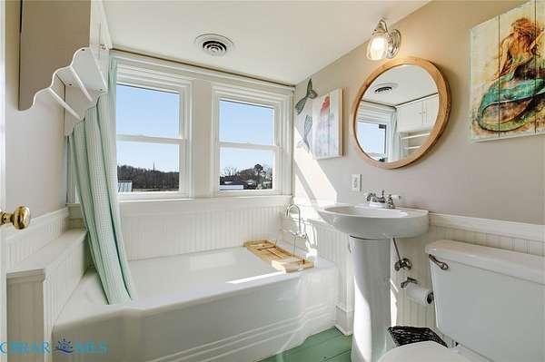 Escape to Virginia's Northern Neck. This charming renovated bungalow sits on over 2 acres with mutliple fenced areas, barns and out buildings. Located just off the shores of the Rapphannock River and facing West, the most amazing sunsets can be viewed each day. The home boasts all the charm of a 1930's bungalow complete with metal roof and hardwood floors, with the updated amenities of quartz counters, tile backsplash, and gas cooking. First floor features a primary bedroom, formal dining room, living room, full bathroom, and laundry/mudroom. The second floor has 2 guest bedrooms, a full bathroom and reading nook at the top landing. The back deck is a perfect place to host outdoor parties or sunset sips. The deck has a direct propane line for the grill. The detached garage has a one car bay, room for work benches and an attached rec./studio space with an a/c unit currently being used as the "pool room." All Points Broadband available. Close proximity to local boat ramp, marina, local mart and restuarant. No HOA. No Flood Zone.