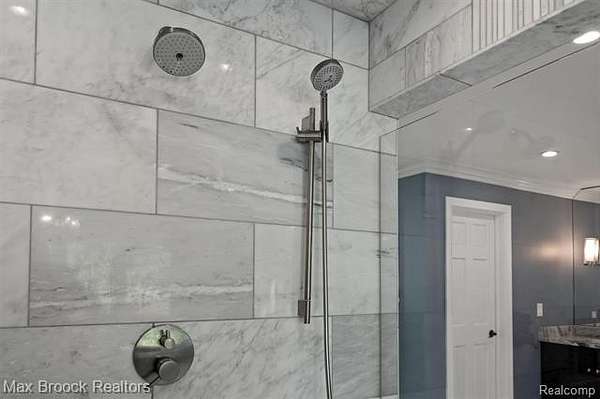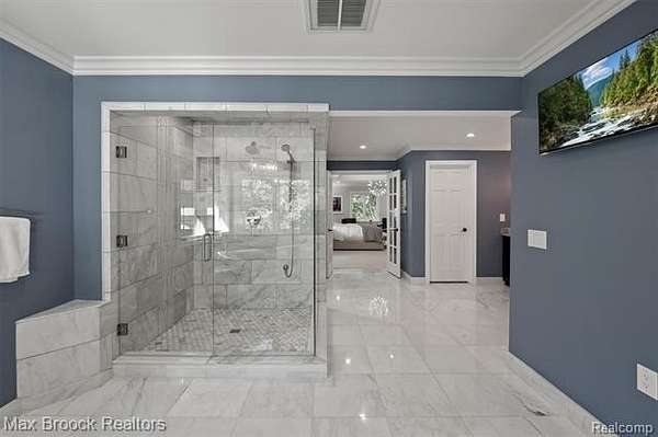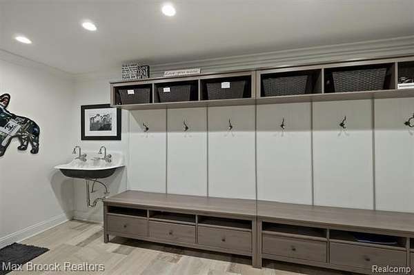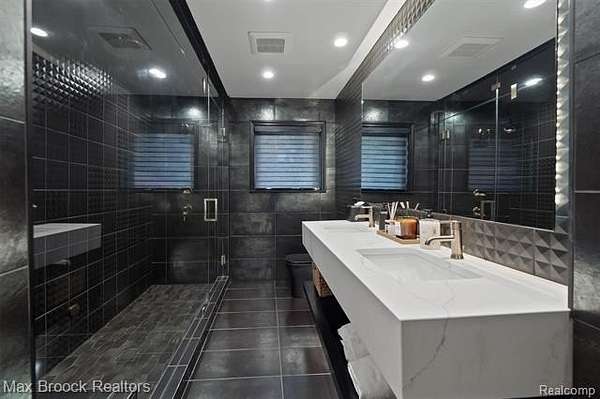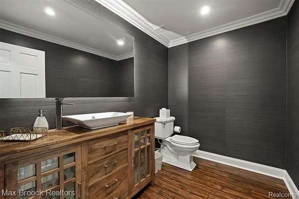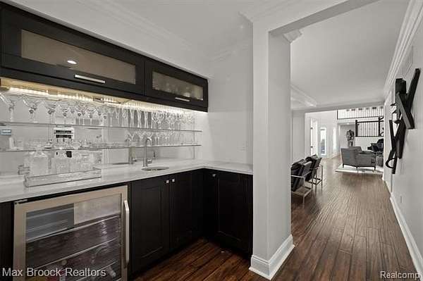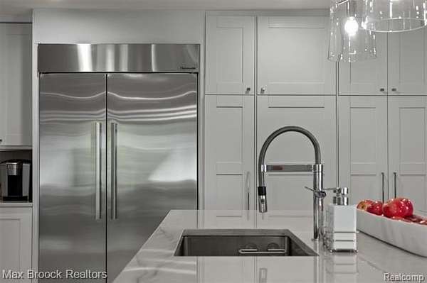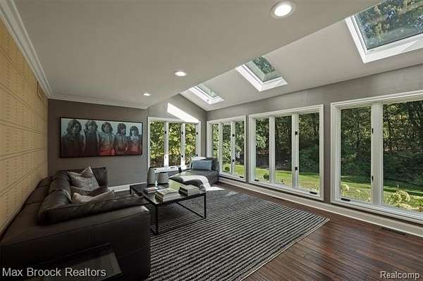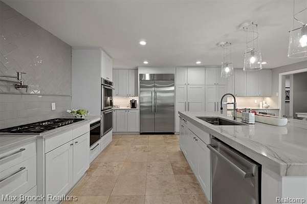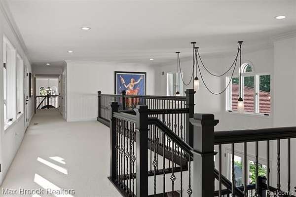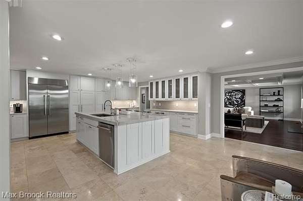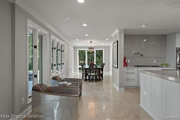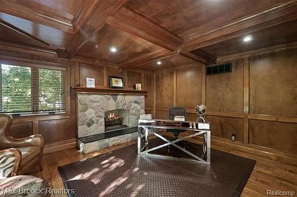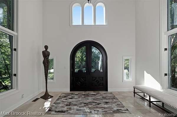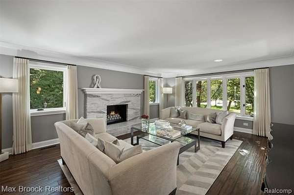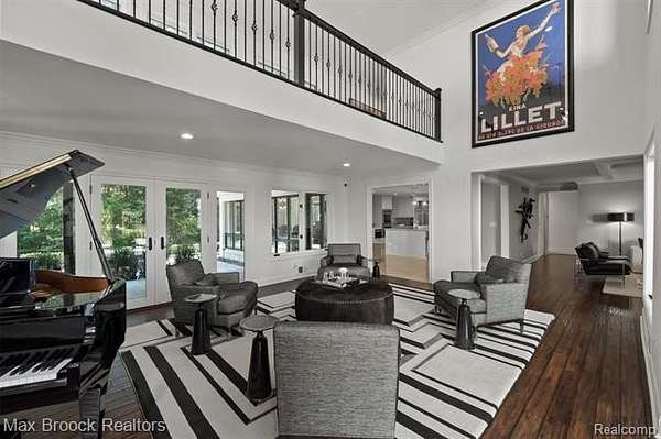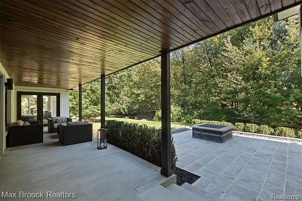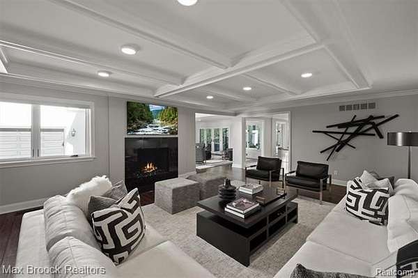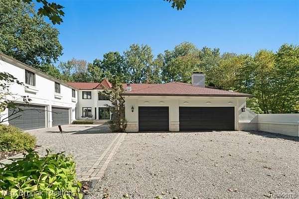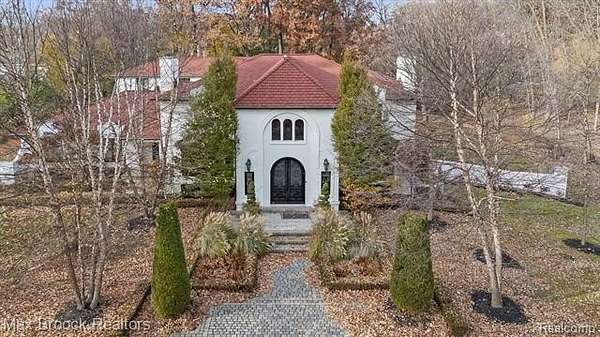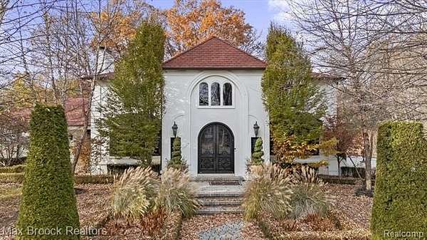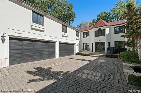 Privately gated & set deep within a mature tree-lined setting, this architectural estate on just under two acres offers both grandeur & privacy in one of the area's most sought-after streets. Surrounded by manicured landscaping, sculpted evergreens, & lush gardens. The interior is modern & sophisticated. Circular drive & cobblestone motor court lead to the home's entry, welcomed by arched double wrought-iron entry doors. Two-story marble foyer, with floor-to-ceiling windows. Wood-paneled library featuring a coffered ceiling, stone fireplace, & wide-plank pine flooring. Gourmet chef's kitchen that blends sleek design with everyday functionality. Quartz counters, white shaker cabinetry, a large center island with countertop seating, all Thermador appliances, double oven, five-burner gas cooktop with a pot filler. Hand-scraped hardwood floors throughout most of the entry level. Breakfast nook, family room, and a sitting room perfect for cocktails & conversations all open to the kitchen. For the entertainers, a wet bar and an 864-bottle temperature-controlled wine cellar. Den/four seasons room with walls of windows overlooking the yard and three skylights. The expansive primary suite features a tray ceiling, automatic blinds, French doors opening to a spa-quality marble bath. Frameless glass shower enclosure, freestanding soaking tub, dual custom-fitted walk-in closets. Adjacent to the primary suite is a handsome second-floor office with built-ins, one of two home offices. Newer, gleaming hallway bathroom floating vanity and steam shower. Dual, black-iron staircase railings. Second-floor laundry. Epoxy, heated garages for seven cars. New patio with built-in fire feature. Close to all three award-winning Bloomfield Hills Schools: Conant Elementary, South Hills Middle, Bloomfield Hills High. A short drive to downtown Birmingham, country clubs & private schools. Refined finishes throughout, with an unwavering attention to design, quality & luxury! Taxes are non-homestead!