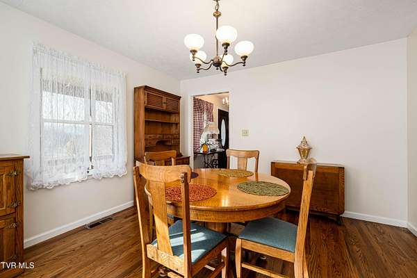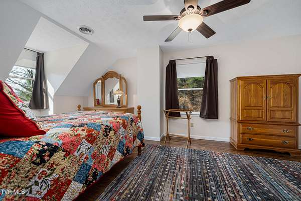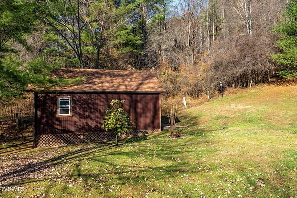 Escape to the beautiful mountains of NE Tennessee in this 3 bedroom, 2.5 bathroom mountain retreat, offering the perfect blend of rustic charm and modern convenience. Just beyond the city limits, this home invites you to relax, entertain and enjoy nature in style. Step inside to find beautiful hardwood floors throughout, and a spacious living room with an electric fireplace. A custom kitchen featuring walnut cabinets crafted from trees grown on the property, granite countertops and a generous workspace and an eat in kitchen. The main level includes a large primary suite with a walk-in closet, a spa tub and a convenient laundry room. A formal dining room filled with natural light and an expansive powder room are also on the main level. Uptairs offers two oversized bedrooms with large closets, a full bath with an electric heater. There's also an office or playroom with pull-down attic stairs for extra storage. The basement features a workshop area, drive-under garage, and a wood-burning stove for backup heat. You'll also find a generator, and an additional pump for the shared well. There are two generously sized outbuildings with electricity for extra storage or hobbies. Enjoy a beautifully landscaped yard with fig, apple, pear and peach trees, surrounded by colorful flowers and flowering shrubs. A private trail leads to the ridgetop, where you can take in superb mountain views - a perfect spot to relax and enjoy the peaceful setting. Major upgrades include: the house and two sheds were freshly painted in 2022 and the homes interior was painted in 2023, a Smart water heater (2020), a Carrier Infinity Heat Pump and new duckwork (2018), new roof (2018), Andersen Thermal Pane Windows, a generator and wood stove for backup heat. Come and enjoy the beauty and wildlife of the Appalachian mountains. Buyer/Buyer's agent to verify all information.