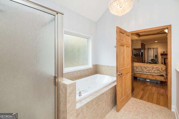 - Double Vanity, Master On Main Level, Separate Shower, Tile Bath, Tray Ceiling(s), Vaulted Ceiling(s), Walk-In Closet(s)