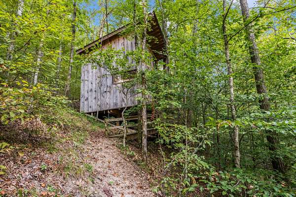 Your dreams of a private wilderness getaway and home site mere minutes from downtown come true on nearly 32 unspoiled acres adjacent to Beaman Park where time slows, and the only sounds are wind, birdsong, and the rustling leaves. The land is anchored by a quiet pond stocked with trophy bream, with a dock and cabin resting on the shore. Follow the lakeside path to find another rustic loft cabin tucked into a lush hillside forest where sunlight filters through the trees. A winding road leads to a spacious summit clearing offering a rare opportunity to build - whether it's a modern home, rustic cabin, or minimalist retreat - let your imagination run wild. NES power, high speed wired internet and well are located at home site. Fishing pond area and cabins also have power. Pond has an aerator and solar feeder to keep the fish happy and healthy. This special property is ready as is for weekend grilling and fishing with friends, writing songs by the fire, or just getting away from hectic city life. Or take it to the next level by building a mountaintop home of your dreams.