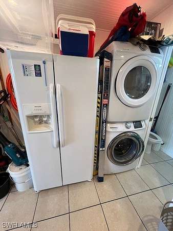 This east, facing Drive in motorhome lot sits on Sunset Lake and has a beautiful view of the lake and fountains. The concrete has been faux finished with a diamond type sealer. Extra pavers have been added for your additional comfort and lounging space. Included on the lot is a 10 x 12' Amazon shed with a 10 x 24' extended roof with a sun blocking drop-down screen. Inside the Amazon shed features a full-size Frigidaire refrigerator freezer, a stackable Samsung full size washer and dryer which will save you many trips to the laundromat. The floor is tiled and has a toilet, shower, an on-demand hot water heater, and a large stainless-steel sink that is built on a nice cabinet with a countertop. Above the counter is overhead storage cabinets with a built-in GE microwave. This lot is nicely landscaped It's ready for your RV.