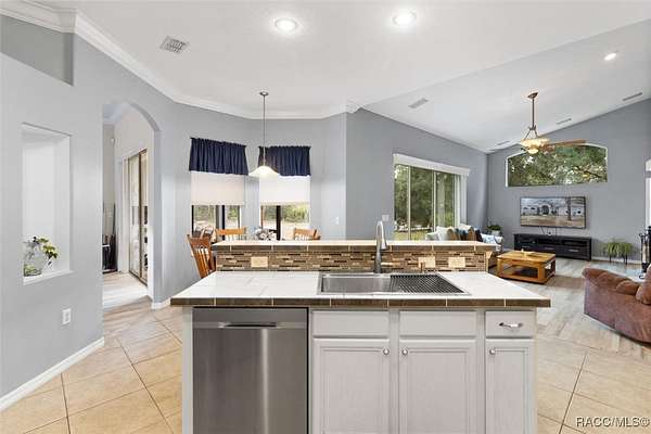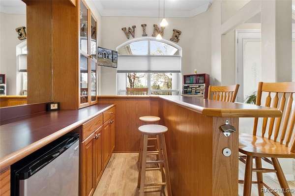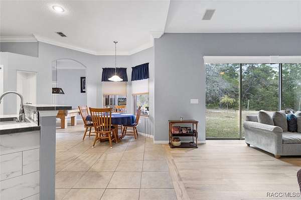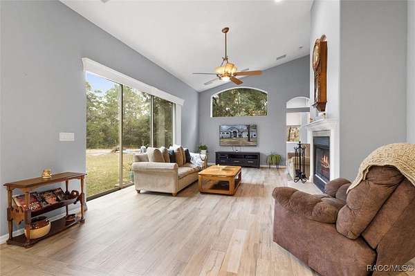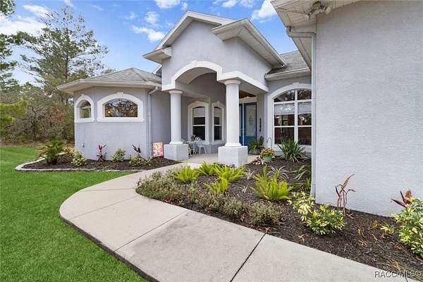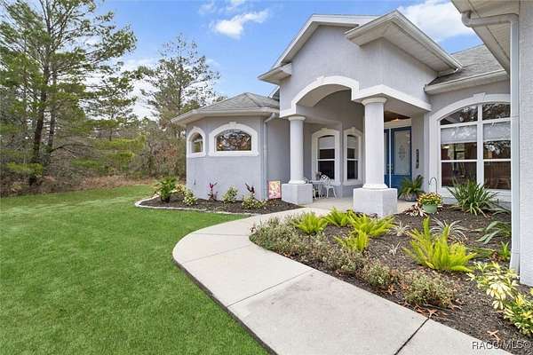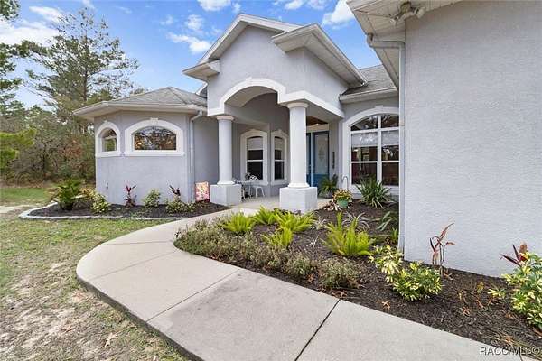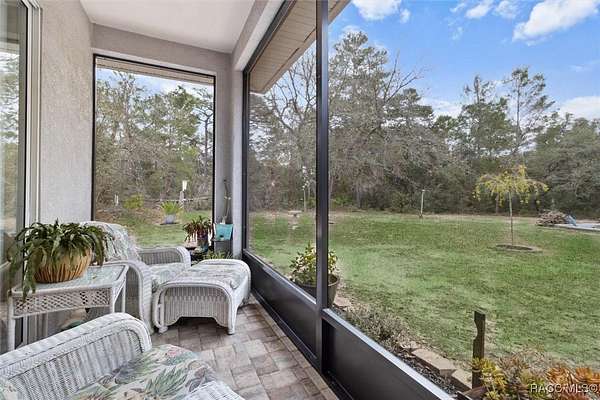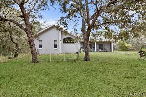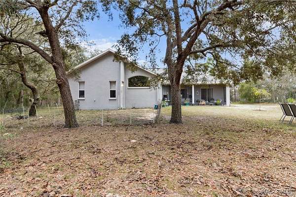 Country living in Pine Ridge Estates, just minutes from everything! Welcome to this beautifully designed 4 bedroom, 3 bathroom home, complete with a versatile den and a spacious 3 car garage. Situated on 4.83 acres, this property offers ample space for horses and outdoor activities while keeping you close to modern conveniences. Step inside to find an inviting living area featuring an updated kitchen with sleek, modern finishes, newer appliances, large pantry, and ample counter space - ideal for cooking and entertaining. The built-in bar adds an extra touch of luxury, ideal for entertaining. Retreat to the oversized bedrooms and bathrooms offering plenty of space and comfort. Primary suite offers plenty of space and huge bathroom with jetted tub and walk in shower. A cozy wood-burning fireplace adds warmth and charm to the living area. Tile throughout the home, and bedrooms feature berber carpeting. Outside, enjoy the peaceful surroundings with plenty of room for horses, gardening, or relaxing by the fire pit. Located just minutes from new shops, restaurants, the YMCA and only 10 minutes to the Suncoast Parkway, this home provides a balance of privacy and accessibility. Water enthusiasts will love being just minutes from Crystal River and Homosassa; two great spots for fishing, kayaking and boating. This property is sure to impress! ***with acceptable offer, seller will pay for a new roof.