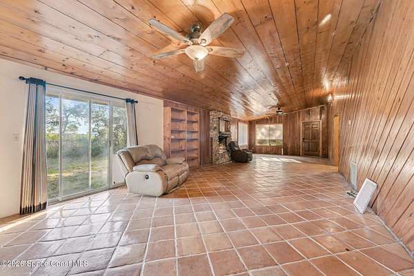 Set on 4.62 acres along a paved road, this 3BR/2BA country home offers privacy, space, and a peaceful setting. Built in 1988 with 1,749 sq. ft., the home features tile floors, an indoor laundry room, and a cozy stone fireplace in the main living area. Property is zoned Agricultural and served by well and septic-no city water bill. A great opportunity for those looking for room to spread out with country living conveniences. Easy access to the Coast-to-Coast bicycle trail, Cape Canaveral National Cemetery, Wild Life Refuges, Ocean's, Rivers, shopping, and so much more. Short commute to The Space Center or the attractions in Orlando.