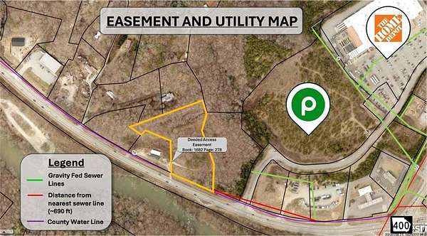 Location, Location! Prime commercial lot overlooking the Chestatee River at its widest point with 300 feet of HWY 60 road frontage, less than 1/10th of a mile from brand new Publix Shopping center that opened in the Fall of 2024, and 2/10 of a mile to the 400/60 intersection. 23,900 cars per day come through the 400/60 intersection. Public water and natural gas runs right in front of the property line. The power is serviced by Georgia Power. Fiber Optic high speed internet by Windstream. This property is less than 700 feet from gravity fed sewer lines. The seller has invested in clear cutting nearly the entire property, providing ease of walkability and a head start of developmental costs. Additionally, this property holds an easement to the driveway on the adjacent parcel, cutting construction costs and timely permitting with the DOT. This property would be a great investment as a buy and hold, or it can be developed into whatever suits your needs. Commercially zoned - Lumpkin County operates on "land use," rather than conventional zoning that has specific uses within commercial. Whatever your vision is, you can do it here without the timely and financial stress of worrying about the politics of how a vote will go or dealing with opposition at public hearings. This is your chance to get into real estate along the 400 corridor before prices become unaffordable. *Possible Assembly with adjacent properties - ask for more details!* Owner financing considered with 50% down and 10% interest.