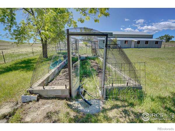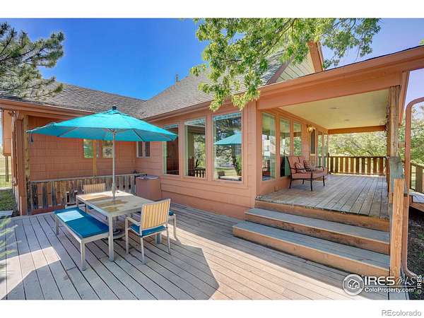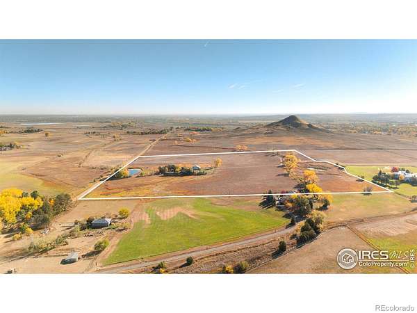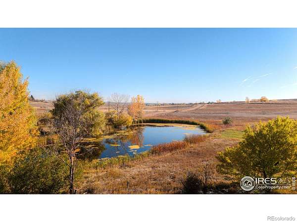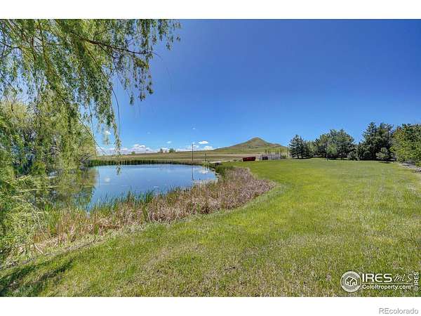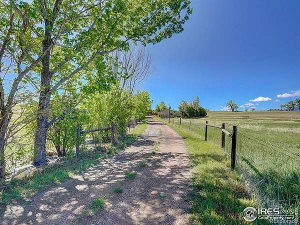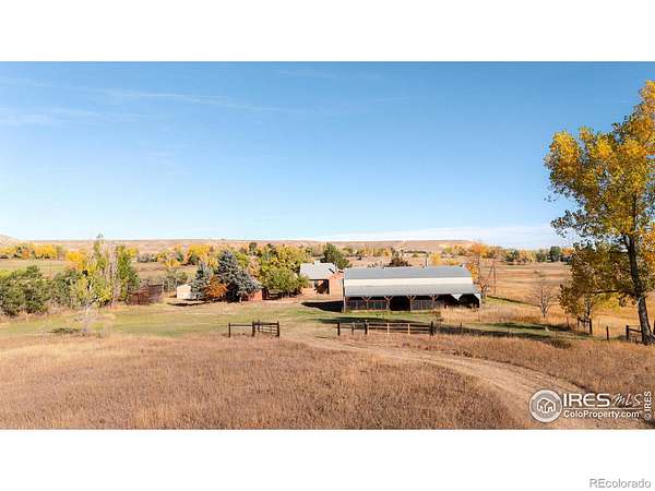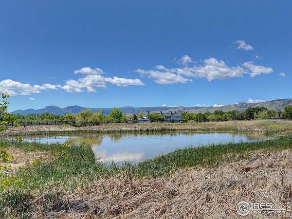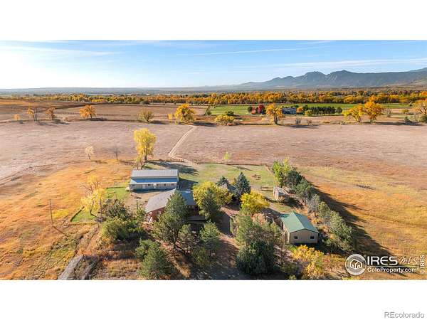 Escape from it all on this peaceful 38-acre Boulder County property featuring a four-bedroom, three-bathroom home, incredible views, lush scenery, a spring-fed pond, 30 shares of Left Hand Ditch, and multiple outbuildings ready to accommodate a variety of uses. Located just 20 minutes from Longmont amenities and Boulder attractions, this is the perfect farm getaway. The sunny 2,924-square-foot residence welcomes relaxing living and entertaining with kitchens and living areas on both levels. On the main floor, an inviting covered porch opens to a spacious open living and dining room wrapped in oversized windows that capture impressive views. The kitchen features abundant wood cabinetry, a breakfast bar, stainless steel appliances, and an adjacent bonus area suited for a breakfast room or home office. The primary suite includes a king-size bedroom, sitting or dressing room, walk-in closet, and en suite bathroom with soaking tub. A secondary bedroom and powder room complete the level. The lower level is a full height daylight level with substantial natural light and functional living spaces. Here you'll find a family room, dining area, kitchen, and a contemporary full bathroom. With a separate entrance and two additional rooms, this level is ideal for guests or multigenerational living. Large decks around the home invite outdoor dining and lounging. Across the 38-acre ranch, mature trees and rolling lawns lead to multiple outbuildings, including a summer guest house and a large barn equipped with a bedroom, home gym, and three stalls with paddock access. A third rustic outbuilding provides storage, while two ponds-one spring-fed and one for irrigation-enhance the pastoral setting. Raise chickens, grow flowers and vegetables in fenced gardens, and enjoy room to roam with no conservation easement and 30 shares of Left Hand Ditch rights. Zoned for St. Vrain Valley schools and close to Open Space, trails, golf, Longmont, and Boulder.