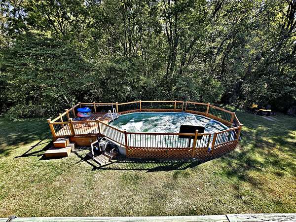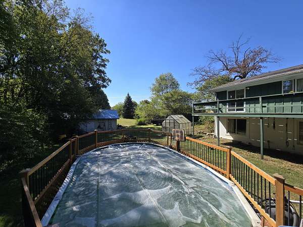 ''Charming Ranch-Style Home on 3 Acres with Stunning Outdoor Features'' Nestled in a serene, park-like setting, this beautiful ranch-style home offers the perfect blend of comfort, privacy, and nature. Situated on 3 acres of picturesque land, the property features a lush landscape with wooded areas, vibrant red and black berry bushes, and newly planted apple trees, creating a peaceful and natural retreat. Step inside this 3-bedroom, 3-full-bath home, where spacious living areas and abundant natural light make every room feel welcoming. The home's walk-out lower level adds even more versatility, offering additional living space with easy access to the stunning outdoor environment. The expansive backyard is designed for both relaxation and entertainment, with a swimming pool-half above ground and an attached spacious deck and railing-perfect for summer fun. The back of the house is graced with an oversized deck that spans the entire length of the home, ideal for outdoor dining, lounging, or simply enjoying the scenic views. For those with a green thumb, a small 12x10 greenhouse awaits, providing an excellent space to nurture your gardening passions. Additionally, the property includes a 15x30 barn/garage, offering ample storage and workspace for hobbies, projects, or farm equipment. Whether you're looking to relax by the pool, explore the woods, or enjoy the tranquility of your own private oasis, this property is a true retreat. Come see the endless possibilities this home has to offer!''