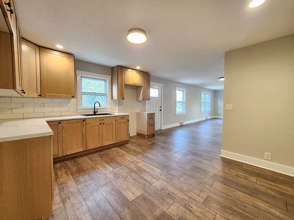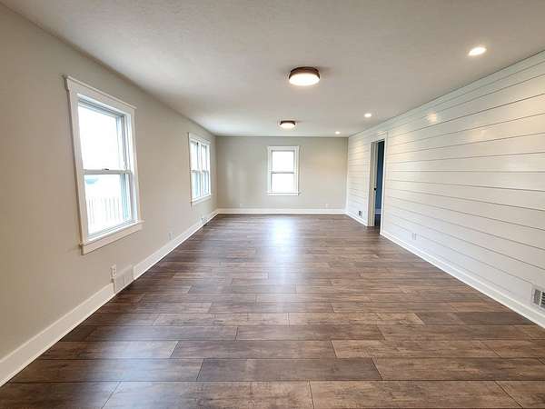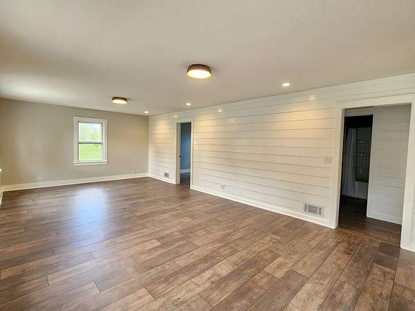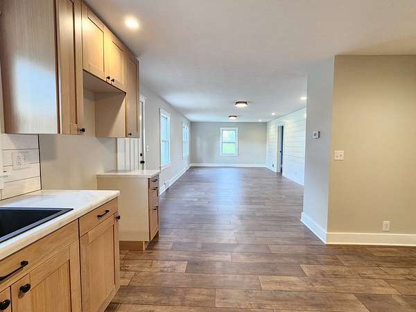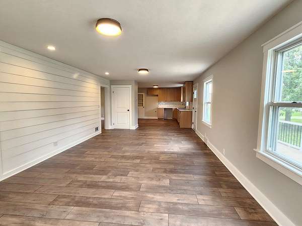 Welcome home to this beautifully remodeled 3 bedroom 1 bath ranch home situated on 2.25 acres! This charming property blends modern updates with rustic appeal featuring stunning new floors throughout and stylish shiplap accents that add warmth and character. The brand-new bathroom offers a fresh, contemporary feel, while the open layout provides comfort and ease of living. Outside you'll enjoy a gorgeous composite porch-perfect for relaxing or entertaining. A spacious 48x30 barn adds versatility for storage, hobbies, or livestock, surrounded by wide-open space ideal for outdoor enjoyment. This move in ready home offers the perfect balance of modern style and country tranquility! Delco water. All new wiring throughout except garage. New in 2024- A/C unit, siding, gutters, and composite deck. LVP flooring and paint in 2025. Metal roof approximately 8 years old.