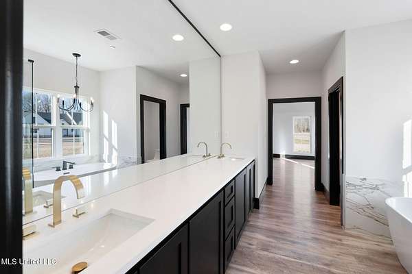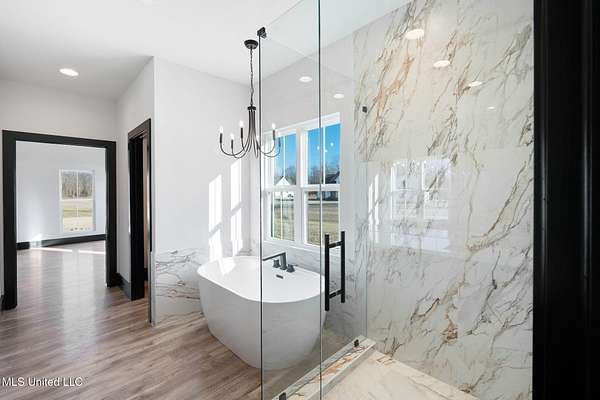 This professionally landscaped yard sprinkled with mature hardwood trees offers a perfect setting for this custom-built home nestled on a private 1.8-acre corner lot. From the moment you step through the double doors, the professional interior design is evident throughout. This open, split bedroom plan is nothing short of being the ultimate home for entertaining! This beauty includes four bedrooms-with the primary suite and two additional bedrooms downstairs and the fourth bedroom/bonus room with the third full bathroom upstairs. The three open areas on the main floor offer limitless possibilities for creating your own living space. The designer kitchen features matte black cabinetry with hidden drawers for a sleek modern finish, an eight-burner Forno range with griddle and two ovens, Microwave and extra storage in the island, a pot filler, a black, composite granite farm sink, and under-cabinet lighting. A barn-style door leads to a 96 square foot pantry that offers extra cabinetry and counter/prep space, a second farm-style sink, and wood shelving. The primary suite is tucked away on the other side of the home, and it boasts a coffee/wet bar with a sink (and plumbed for an icemaker) and a private bathroom with a soaking tub, tiled shower, and a 10' double sink quartz vanity. Bedrooms 2 & 3 have walk-in closets and are connected by a true Jack & Jill bathroom where each bedroom has a private toilet and vanity area with locking pocket doors and share the 7x4 dual head shower with exquisite tilework. Other interior highlights include frameless glass doors on all showers, chic lighting fixtures, fashionable color scheme, ultramodern plumbing fixtures, a 10x6 drop station off the garage, a laundry room with cabinets and a mud sink, soaring ceilings, 5 panel painted doors throughout that match the 10'' baseboards with hidden receptacles, a striking half bath off the living area for your guests, upgraded luxury vinyl plank flooring, hurricane proof back door, energy efficient windows that provide the perfect amount of natural light, two walk-in attics, three HVAC units, a tankless water heater, and a fire sprinkler system for the entire home. Exterior features include a painted brick exterior with Hardie board soffits, metal covered dormer and front porch, a double, black rock washed concrete drive that compliments the exterior color scheme where you will find black framed windows, a 24x12 covered back porch with wood ceiling and TV hook ups, a level backyard ready for a pool, and an extra deep 25x24 garage to accommodate your boat or larger vehicles.