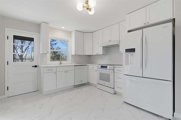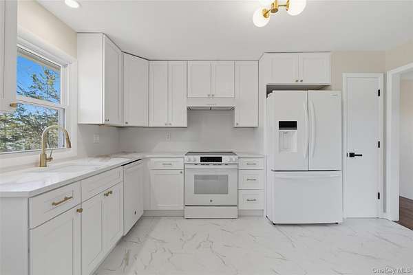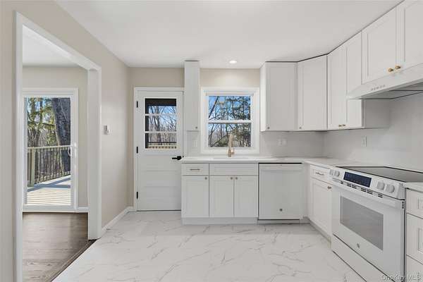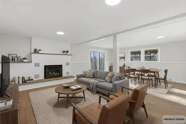 Enjoy a true modern retreat and country tranquility in the heart of Wappingers Falls. This fully renovated home truly has it all. Everything you see, is brand new. Featuring wall to wall windows, rich hardwood floors throughout, designer tile, high end appliances, custom vanities, and more! The main level offers a generous living area with a primary suite and 2 additional bedrooms. Lower level offers a fully finished oversized space with a brand-new gas fireplace functional for a home office, den, or a versatile flex space for multiple uses. With a seamless flow throughout all of the living areas, both floors offer an open concept to comfortably call home. Step outside and enjoy your morning on the impressive brand-new deck overlooking the private backyard. Circular driveway with ample parking for guests. Located in the sought-after Spackenkill School District and just minutes to local shops, Route 9, and Metro-North, this turn-key retreat offers the space and setting rarely found at this price point. Come experience it for yourself!