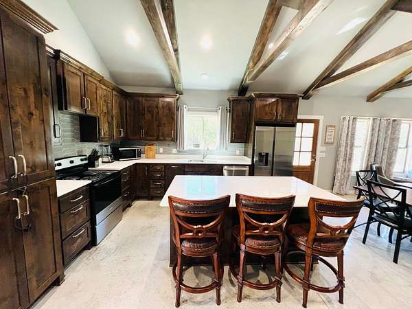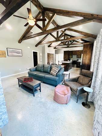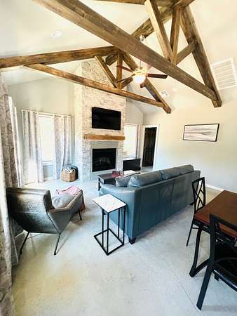 Charming 2-Bedroom, 2-Bathroom Cabin in Tishomingo, OK. Welcome to this picturesque 1,200 sq. ft. cabin nestled in the Good Springs Addition of Tishomingo, Oklahoma. This beautifully furnished home offers the perfect blend of modern comfort and rustic charm, making it an ideal getaway. Interior Highlights: Open Concept Kitchen: The spacious kitchen is the heart of the home, featuring stunning quartz countertops, providing ample space for meal prep and entertaining. Modern appliances and plenty of cabinetry make cooking a breeze. Living Area: A cozy living area that flows seamlessly from the kitchen offers plenty of natural light with large windows showcasing the beauty of the surrounding landscape. It's the perfect spot to unwind and enjoy the views. Two Comfortable Bedrooms: The cabin features two inviting bedrooms, each offering privacy and tranquility. Both rooms are spacious, providing a peaceful retreat at the end of the day. Two Full Bathrooms: Each bathroom is thoughtfully designed with modern fixtures and finishes, providing comfort and convenience for you and your guests. Fully Furnished: This home comes completely furnished, offering a turn-key solution for those looking to move right in and start renting out as a vacation rental. Exterior and Location: Nature's Paradise: Surrounded by tall trees, the cabin provides a serene environment where wildlife like deer and turkeys roam freely. Whether you enjoy hiking, bird watching, or just relaxing outdoors, this location offers it all. Quiet, Secluded Setting: Located in the Good Springs Addition, this home offers the peace and privacy of rural living, with convenient access to Tishomingo's local shops and restaurants. Perfect for Outdoor Lovers: Whether you're a nature enthusiast, birdwatcher, or simply looking for a tranquil retreat, this cabin provides the ideal spot to enjoy the beauty of Oklahoma's landscape. This lovely cabin in Tishomingo offers the ultimate opportunity to escape the hustle and bustle of everyday life while enjoying modern comforts in a pristine natural setting. Don't miss your chance to own this beautiful retreat-schedule a showing today!