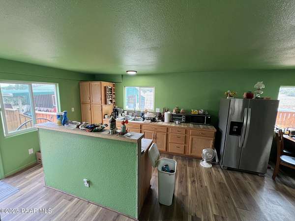 - CFL Lights, Eat-In Kitchen, Kitchen Island, Tile Counters
