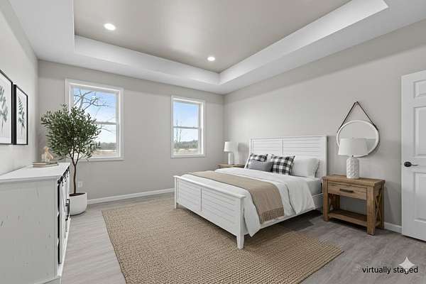 Welcome to this soon to be completed, single-level Craftsman-style home featuring 3 spacious bedrooms and 2 elegantly designed baths. Nestled on a peaceful 3.56-acre lot, the property offers both front and rear covered patio and porch--perfect for entertaining or enjoying serene sunrises and sunsets. Inside, radiant heat warms every room, complemented by 9-foot ceilings and an upgraded lighting package that enhances the home's inviting atmosphere. The primary suite is a private retreat, highlighted by a tray ceiling and a spa-inspired bath with a soaking tub, tiled shower, and dual vanities. Two additional bedrooms provide generous space for family, guests, or a home office Outdoor living is equally appealing, with ample room for gardening, recreation, or simply soaking in the natural surroundings. For future expansion or storage, a large unfinished bonus room above the garage provides endless possibilities.This home combines modern comfort, thoughtful design, and natural beauty--creating a welcoming place to call your own.
