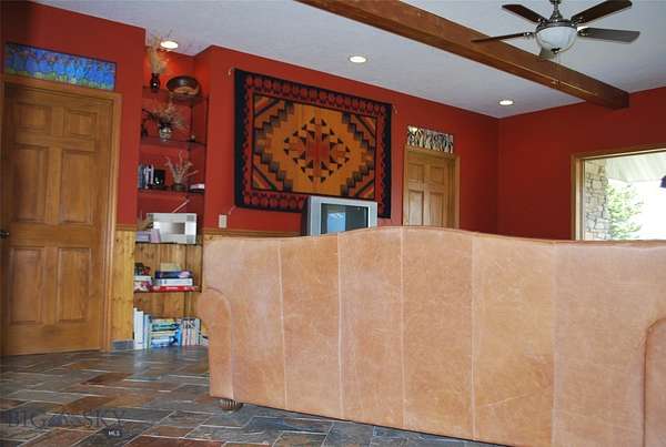 This beautiful home is a retreat on the Yellowstone River that was custom built with great attention to detail and has been meticulously cared for by the original owners who have only used it part time to get away and relax. This is the first time on the market for this property that sits on a 5.96 acre parcel at Blue Ribbon Manors in the heart of Paradise Valley with rare 343 feet Yellowstone River frontage. This home has 1,452 square feet of open living space featuring custom woodwork and beautiful stained glass transom windows above the doors. Interior flooring is slate and the heat system is a propane fired radiant floor system for great efficiency and warmth. The large 812 square foot attached garage is heated. This custom home has beautiful river rock siding with metal facias and soffits for a maintenance free exterior. There are also two open stone porches with over 400 square feet of additional living space, providing a great place to relax and take in the scenery with great views of the Absaroka and Gallatin mountain ranges and iconic Emigrant Peak. There are windows everywhere that flood the house with natural light and the views are spectacular. The famous Yellowstone River is just steps away making short fishing walks as easy as it gets. The property is at a high enough elevation to be out of the FEMA flood zone. The access road is a well maintained gravel lane and provides good year around access. This property is just 20 minutes to downtown Livingston or about 30 minutes to the north entry of Yellowstone National Park. Chico Hot Springs, Sage Lodge and the Emigrant Saloon are about 10 minutes away for a hot springs dip or fine dining opportunities. There are thousands of acres of public lands within minutes of this property for hiking, camping or fishing the back country mountain lakes on Forest Service lands within the nearly one million acres of the Absaroka-Beartooth Wilderness area. If Paradise Valley is your preferred location you are going to want to check this place out. Call your agent today.