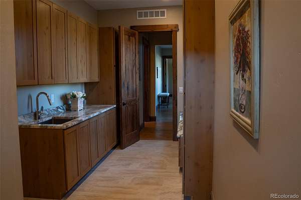 From the moment you step inside, the craftsmanship stands out — every door, trim detail, and cabinet throughout the home is built from rich Knotty Walnut, creating warmth and sophistication in every room. Paired with oak plank flooring and custom stone finishes, the design blends modern luxury with natural Colorado character.